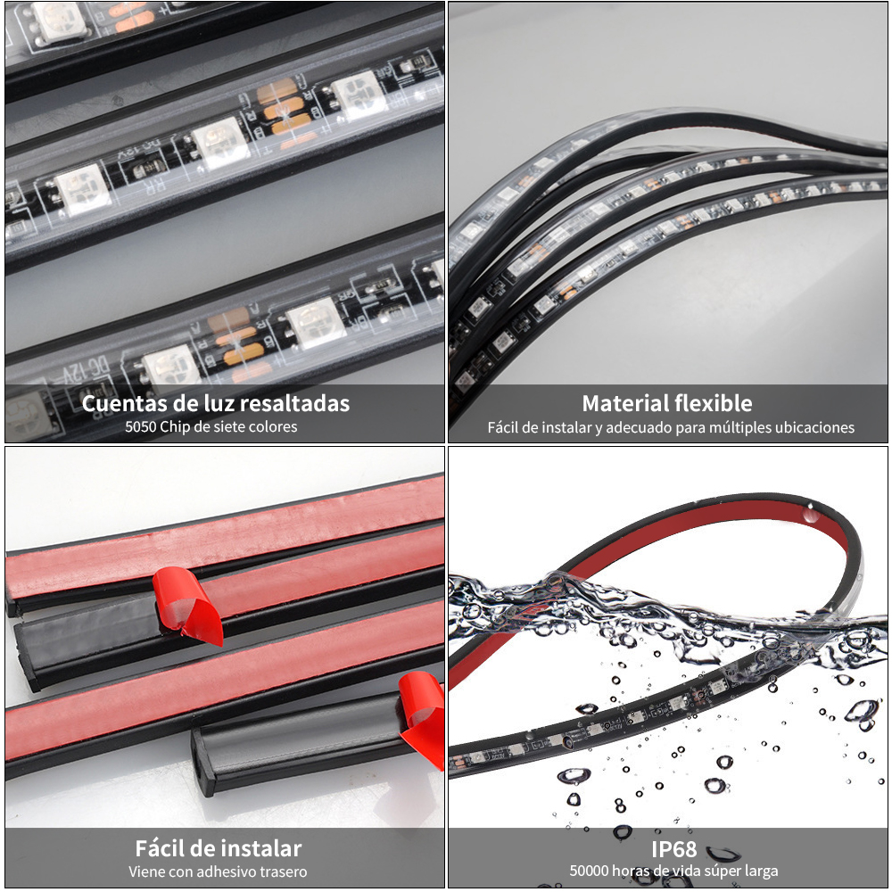 Dale a tu auto un estilo único y llamativo con este kit de tiras de luces de neón decorativas, ideal para realzar el exterior e interior de tu vehículo.