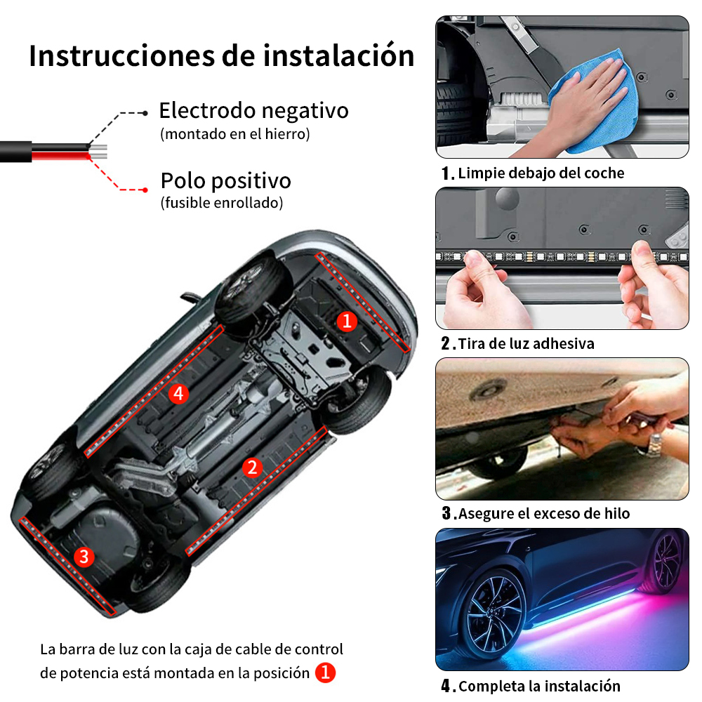 Transforma la apariencia de tu vehículo y haz que destaque de día y de noche con este kit de luces de neón para coche, perfecto para quienes buscan estilo, personalidad y un toque moderno.