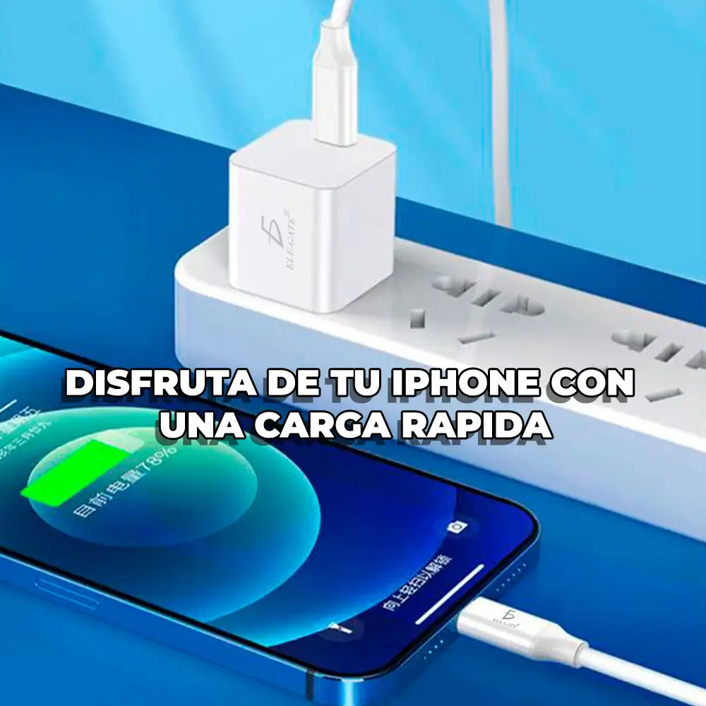 Kit de Cargador y Cable iPhone de Carga Rápida PD Tipo-C a Lightning USB 20W, Diseño Compacto y Seguro, Compatible con Dispositivos Apple