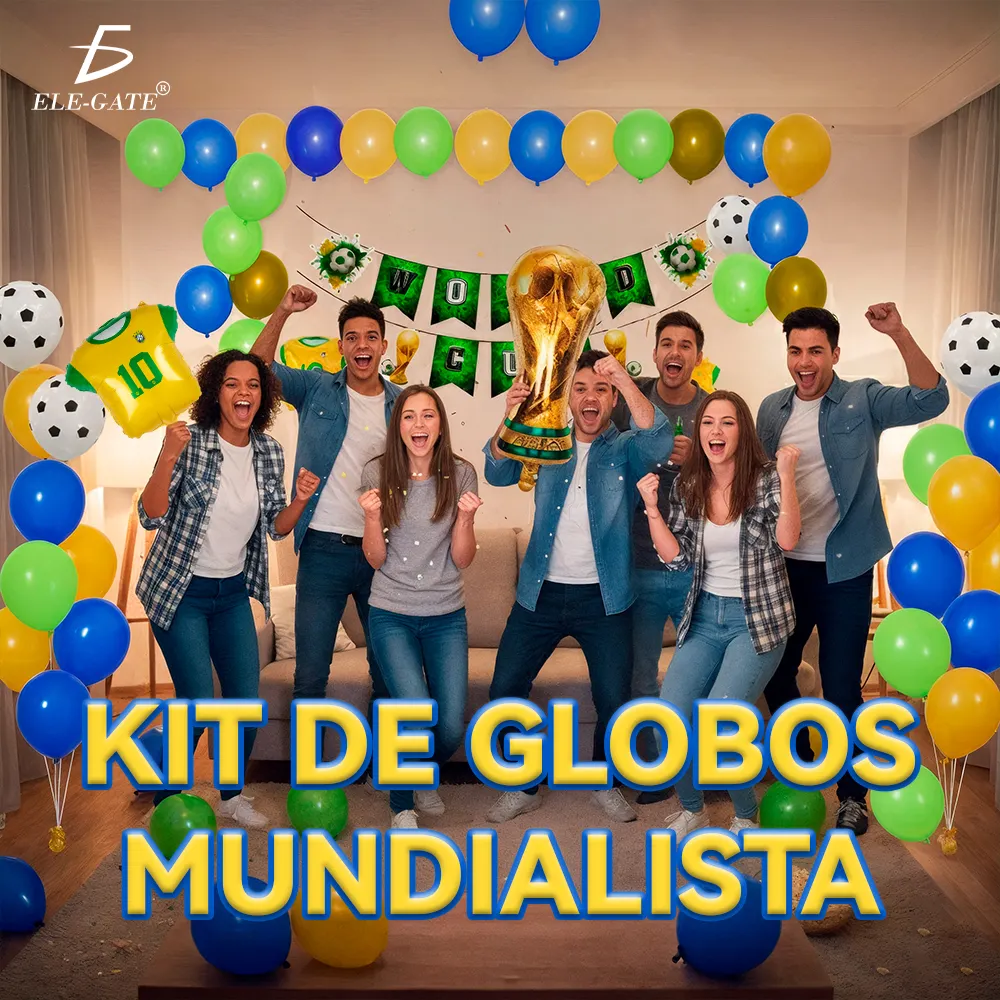 🇧🇷 Temática Brasil: Incluye globo metálico con diseño de la playera de Brasil, perfecto para los verdaderos fanáticos.