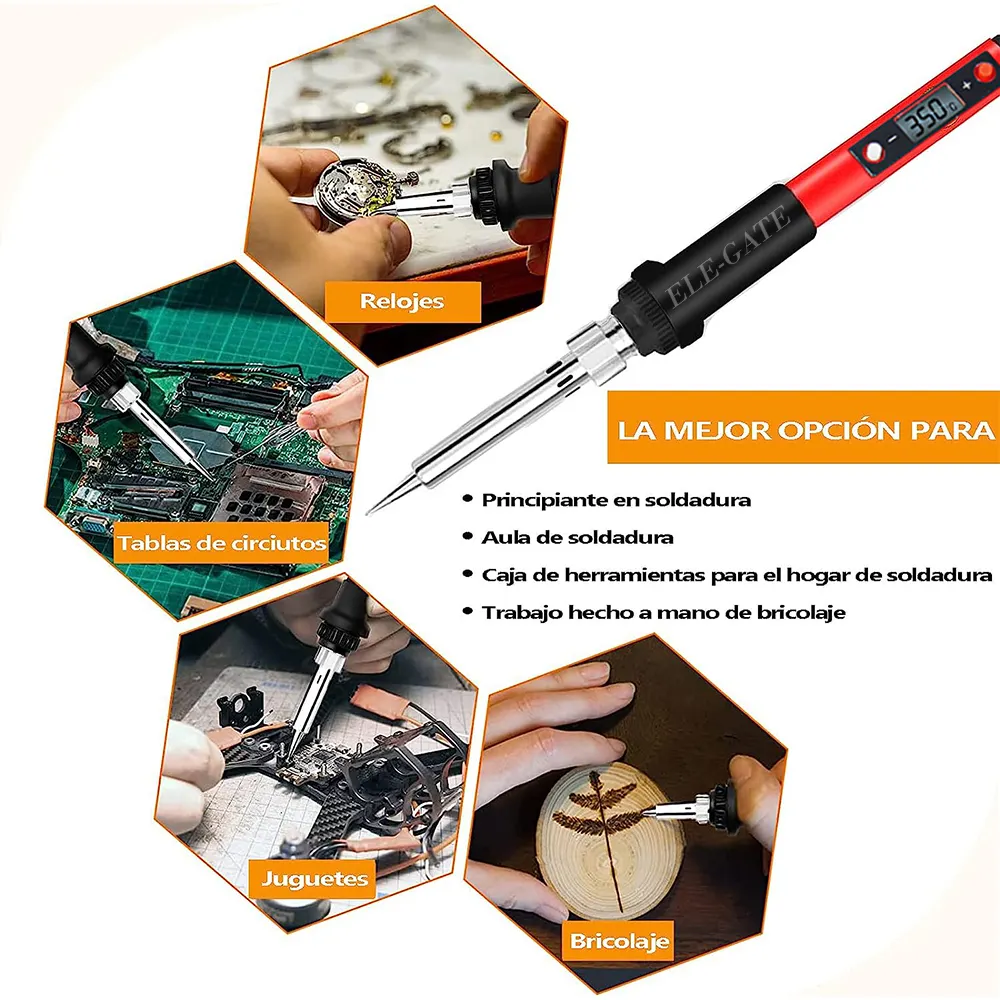 Este completo kit de soldadura con temperatura ajustable y pantalla LCD es perfecto para todo tipo de trabajos de soldadura. Con características destacadas y una construcción de calidad, te brindará precisión y rendimiento óptimos en tus proyectos de soldadura.