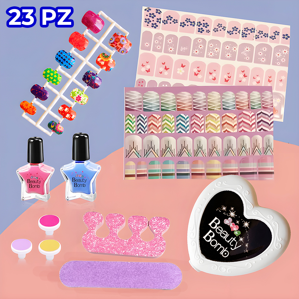 Diseñado especialmente para niñas, este kit permite jugar, imaginar y crear manicuras originales de manera segura y fácil, ya sea en casa o en fiestas.