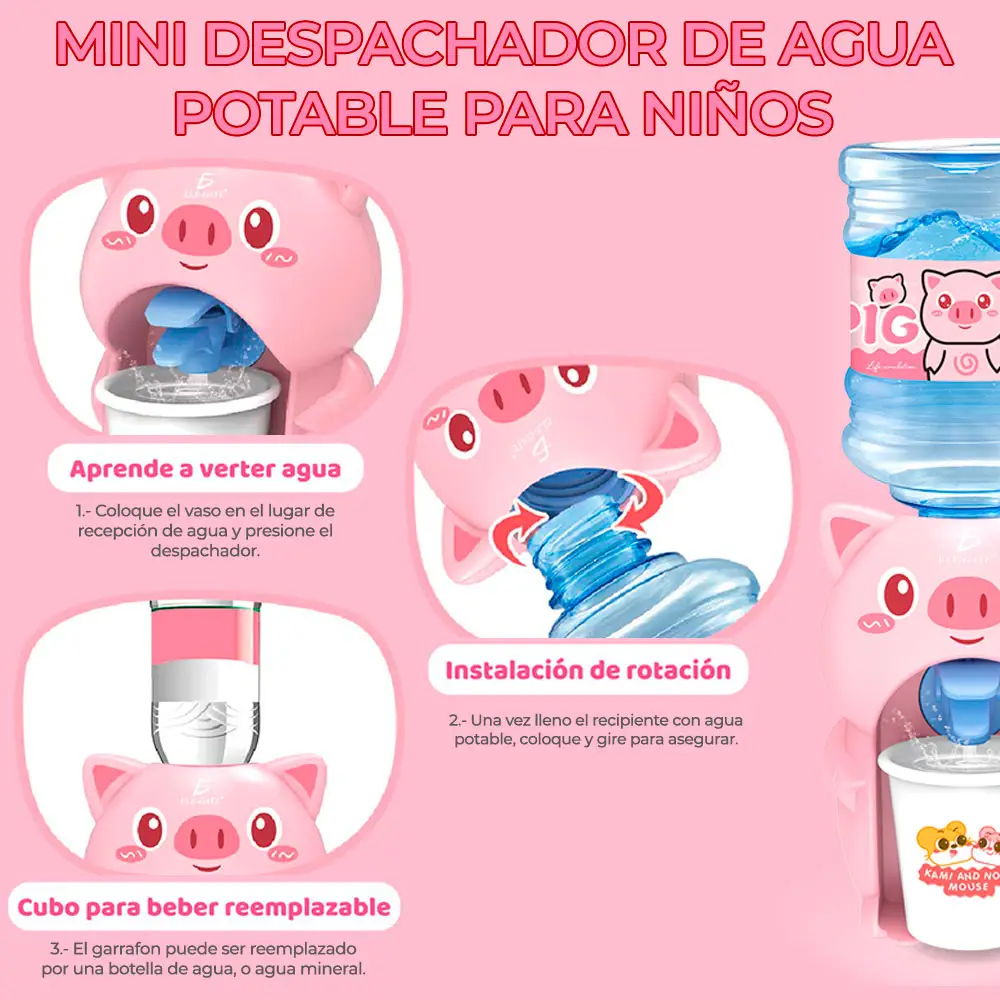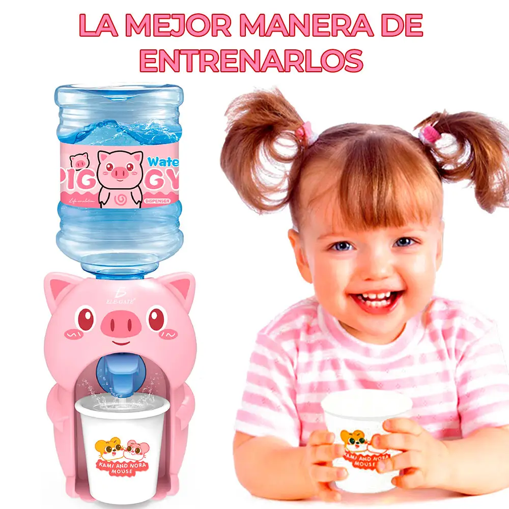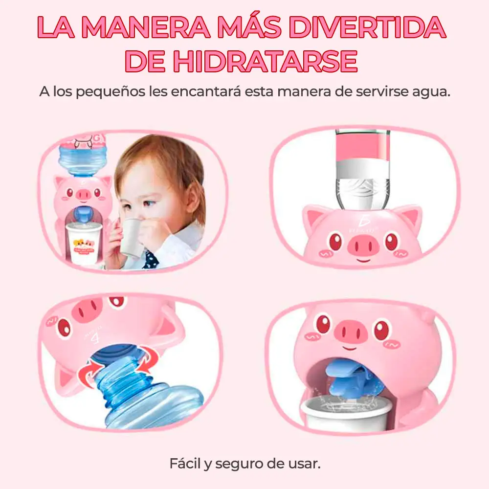 Kit Dispensador De Agua Forma de Pig Para Niños Con 2 Vasos