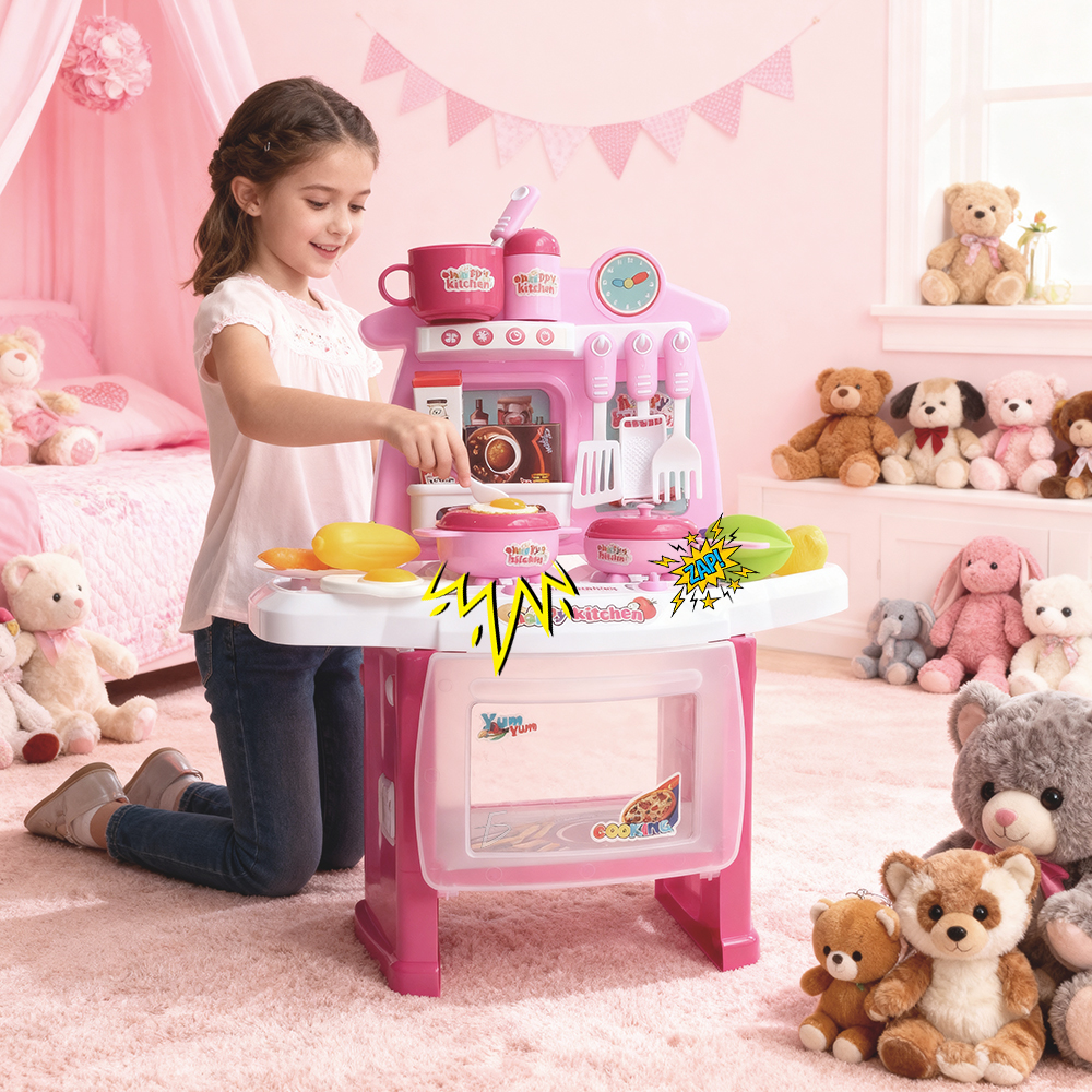 Haz que el juego de imitación sea aún más divertido con este Kit de Estufa de Juguete con Sonido y Luces, especialmente diseñado para que tu pequeña (y también los pequeños chefs de la casa) pasen horas jugando a cocinar. Con sus 22 accesorios incluidos, podrán preparar “comidas” imaginarias, servir a la familia y crear sus propias historias en la cocina.