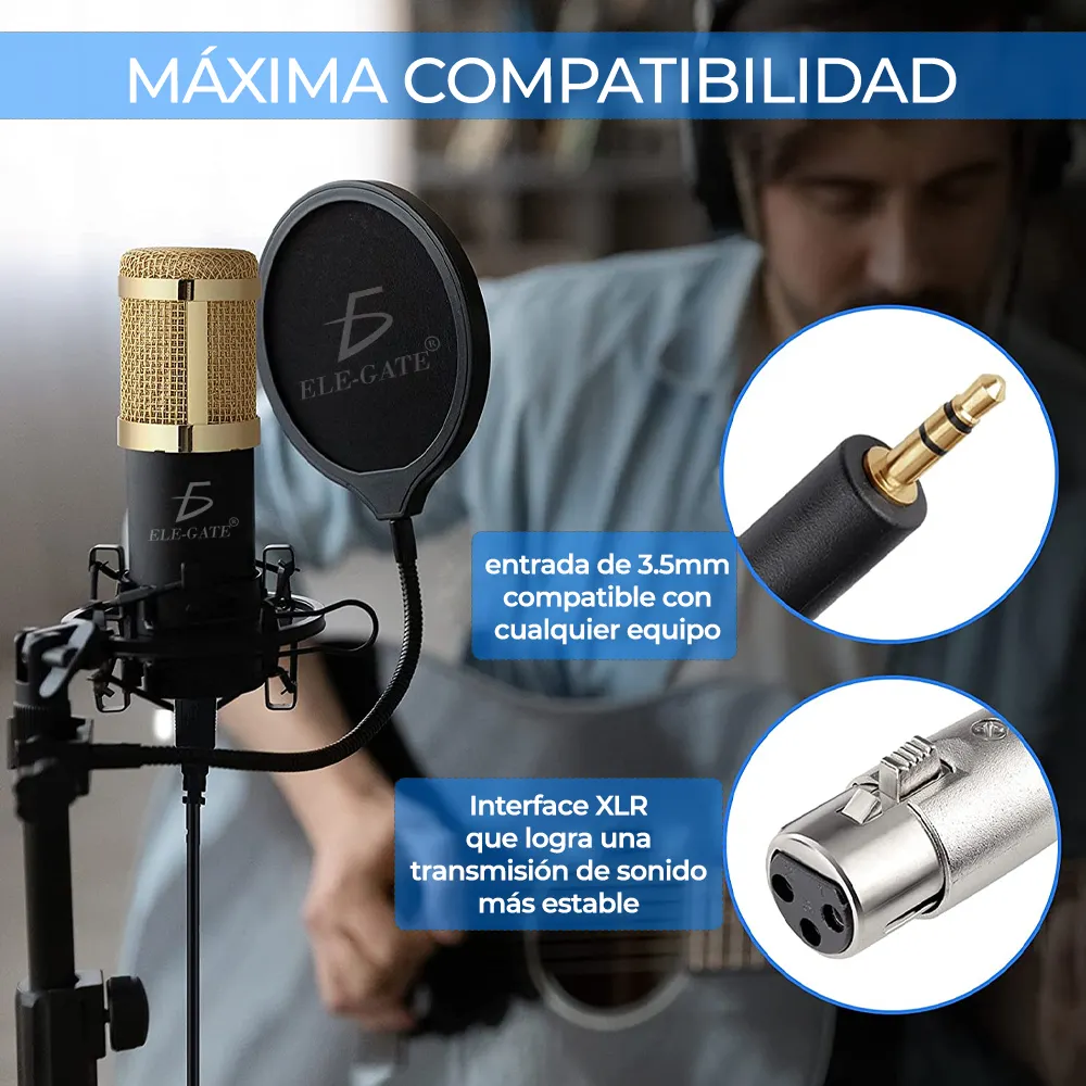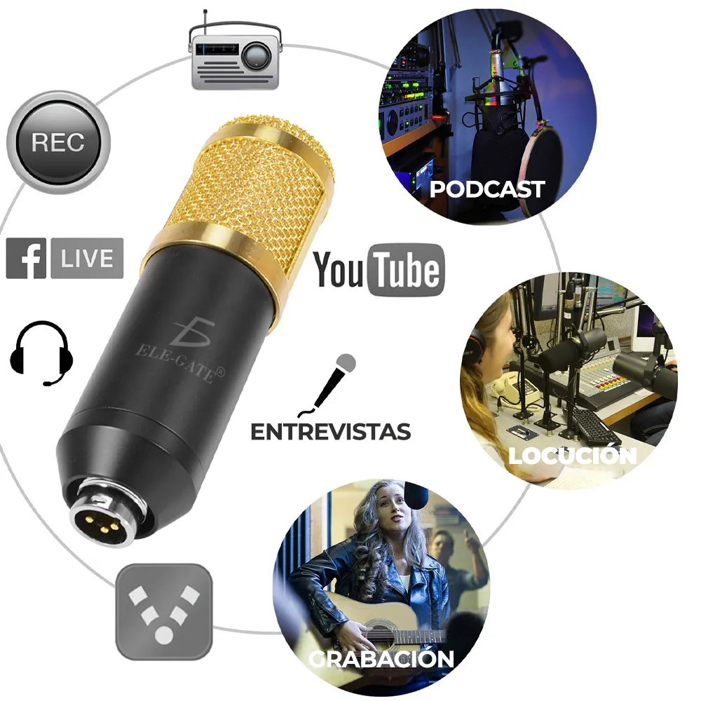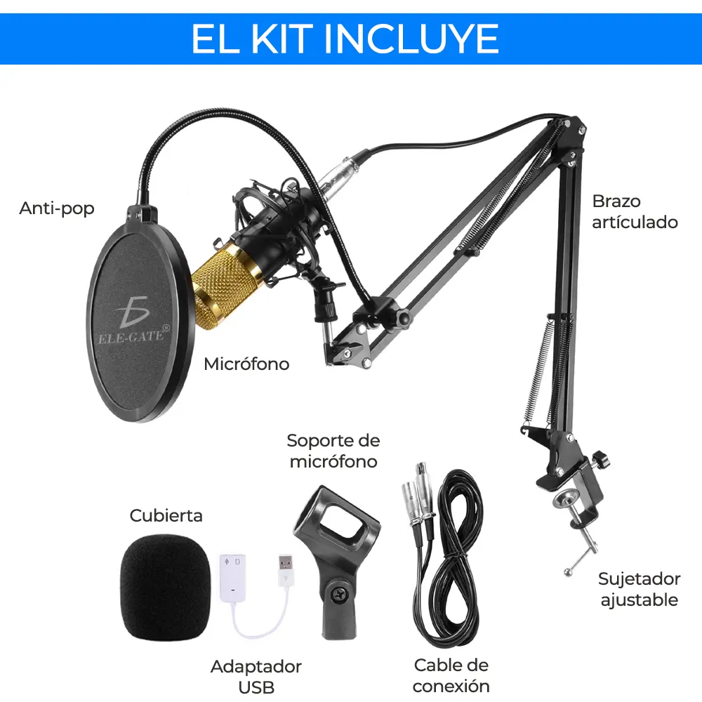 Con este kit profesional de micrófono condensador tendrás todo lo necesario para comenzar tus grabaciones de audio de una manera increíble. Además del micrófono condensador, el kit incluye todo lo que necesitas para trabajos profesionales como podcast, grabaciones de música, entrevistas, locuciones, entre otros.