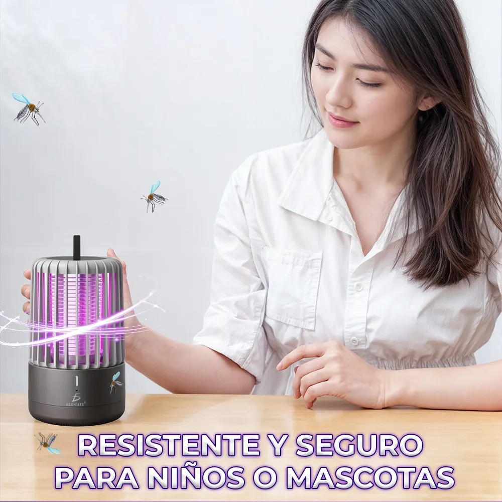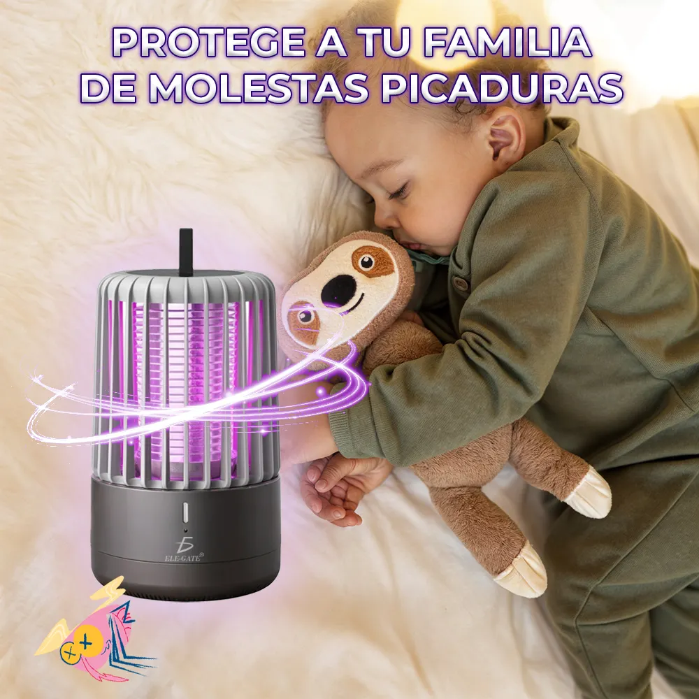 Lampara Anti mosquitos eléctrica con tecnología UV que atrae a los mosquitos, con fondo receptor facil de limpiar y materiales super resistentes. Seguro para niños y resistente a caídas.