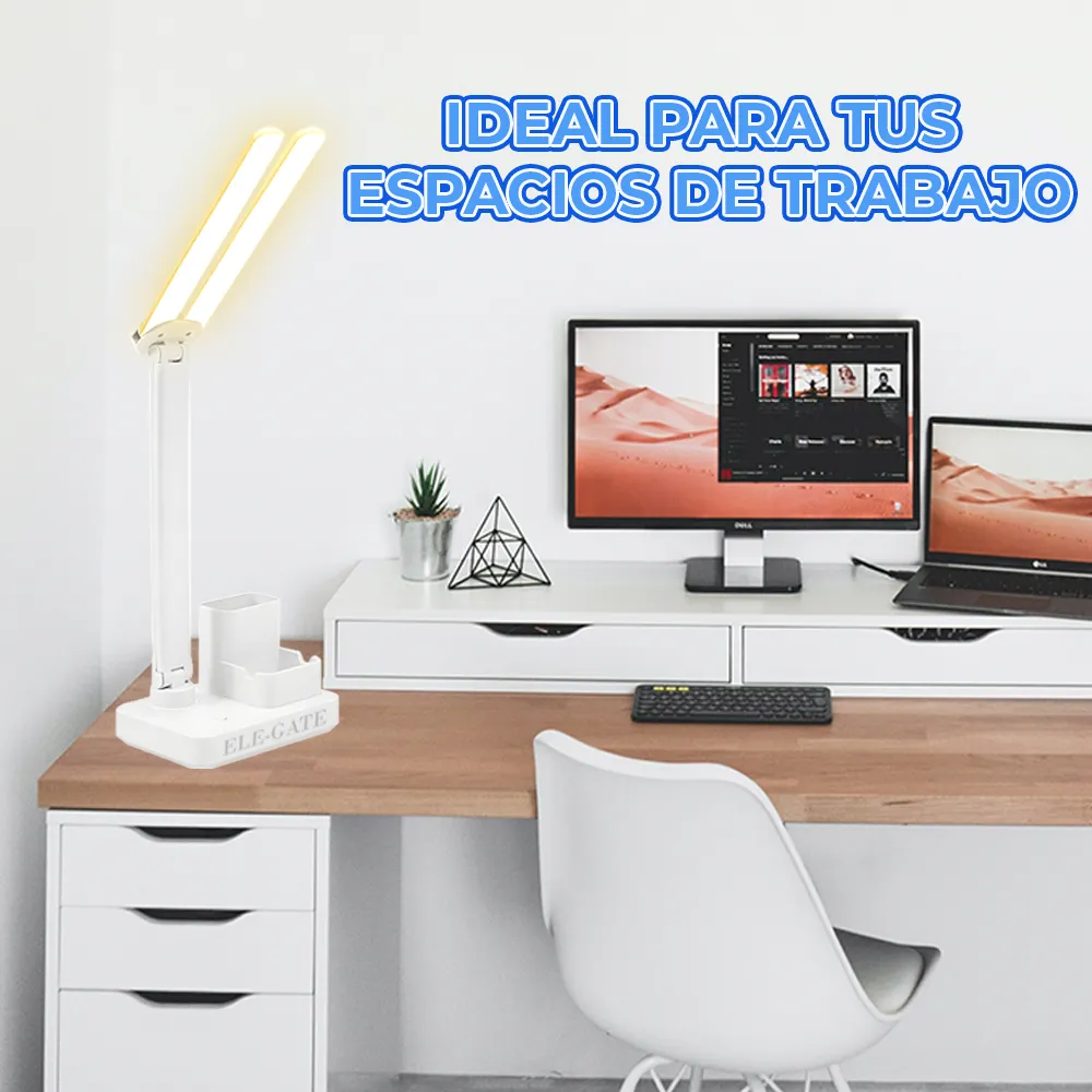 - Diseño moderno de doble cabeza: la lámpara de mesa LED de doble cabeza adopta doble cabeza no solo para resolver el problema del efecto fantasma, sino también para proporcionar un gran rango de iluminación y ángulo. El diseño plegable hace que reduzca eficazmente las sombras de escritura.