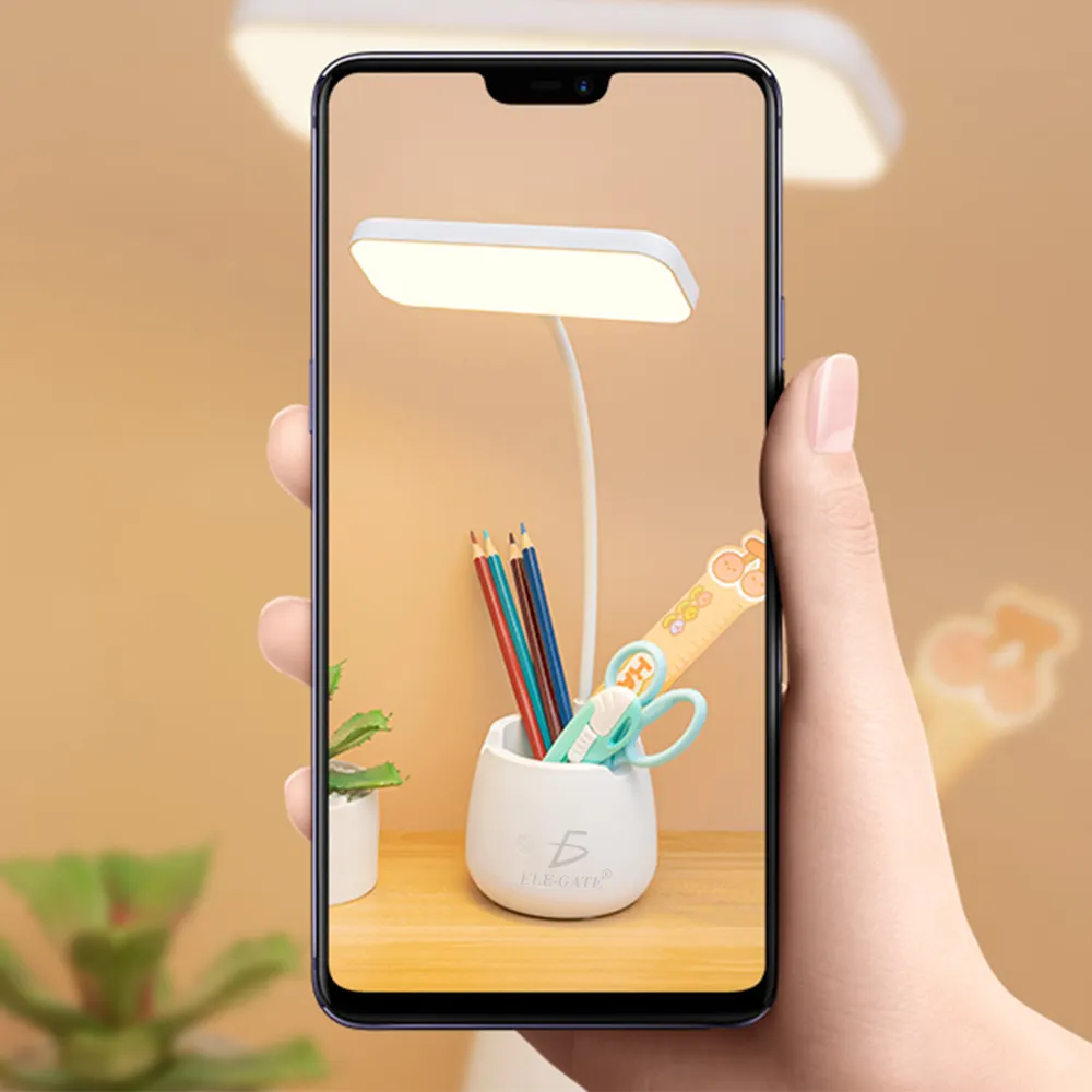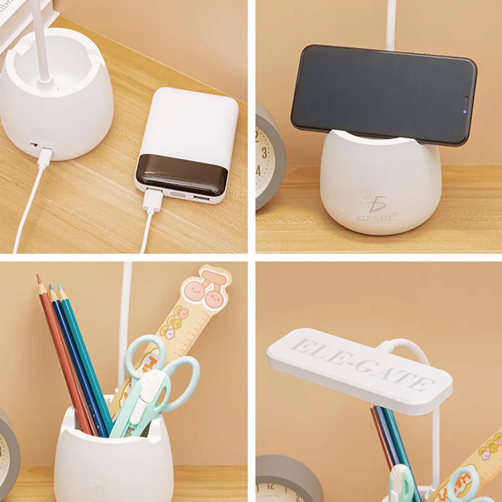 - Lámpara de escritorio plegable y conveniente con diseño de porta lápices