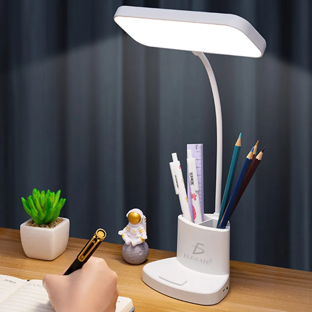 - Con soporte de almacenamiento para bolígrafo y puerto de salida y entrada USB, puede cargar el teléfono móvil, también se puede utilizar como un soporte para teléfono móvil, imitando el ajuste del cuello de cisne y el diseño antideslizante de la parte inferior, y se puede ajustar 360 grados a voluntad
