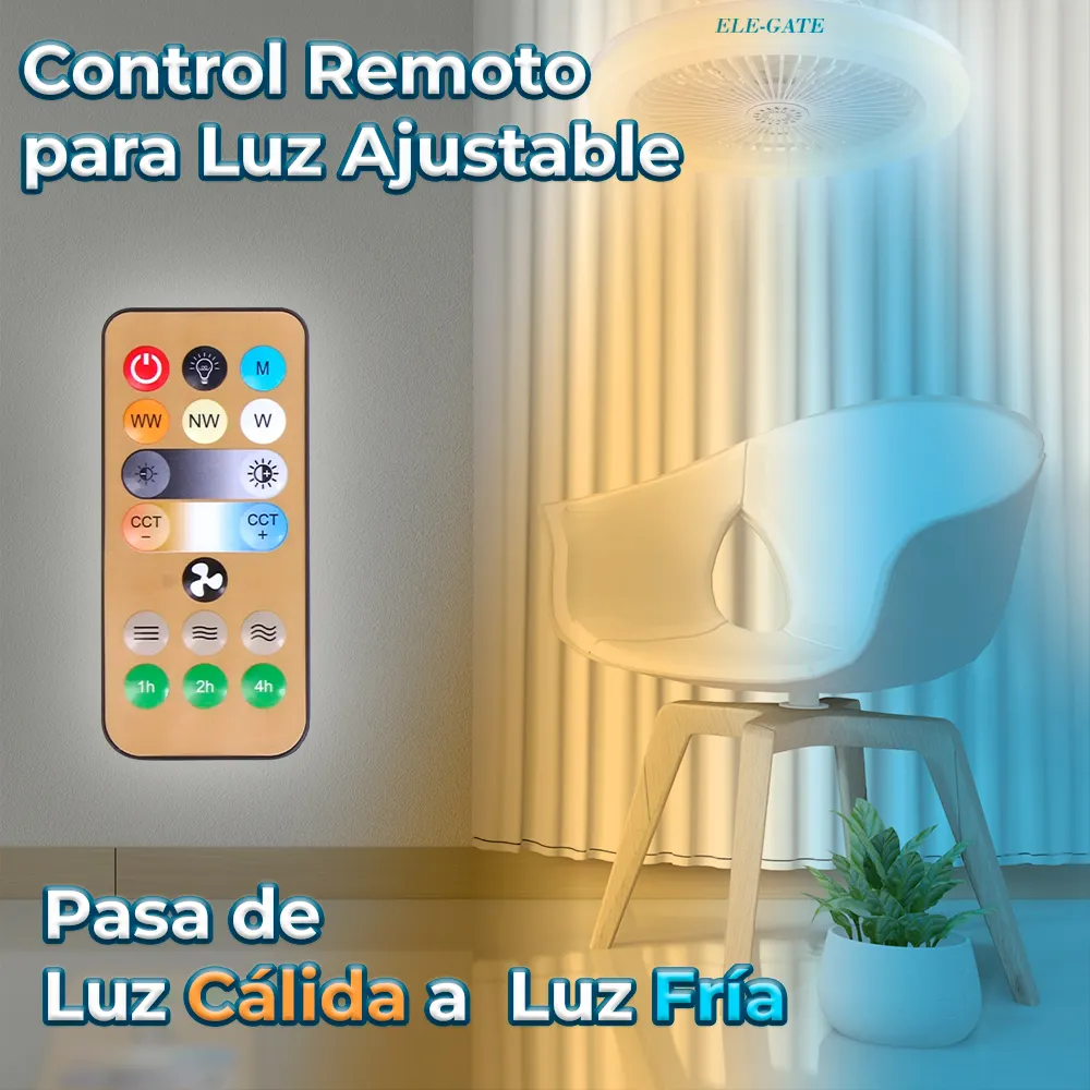 Lampara Led con Control de Temperatura de Cálida a  Fría de 30W con Tres Velocidades de Ventilador de 15W con Cabeza Móvil 180º . Diseñada para mantener fresco e iluminado cualquier espacio y gracias a su control podrás controlar la luz de 6500k a 3200k logrando ambientes cálidos o neutros.