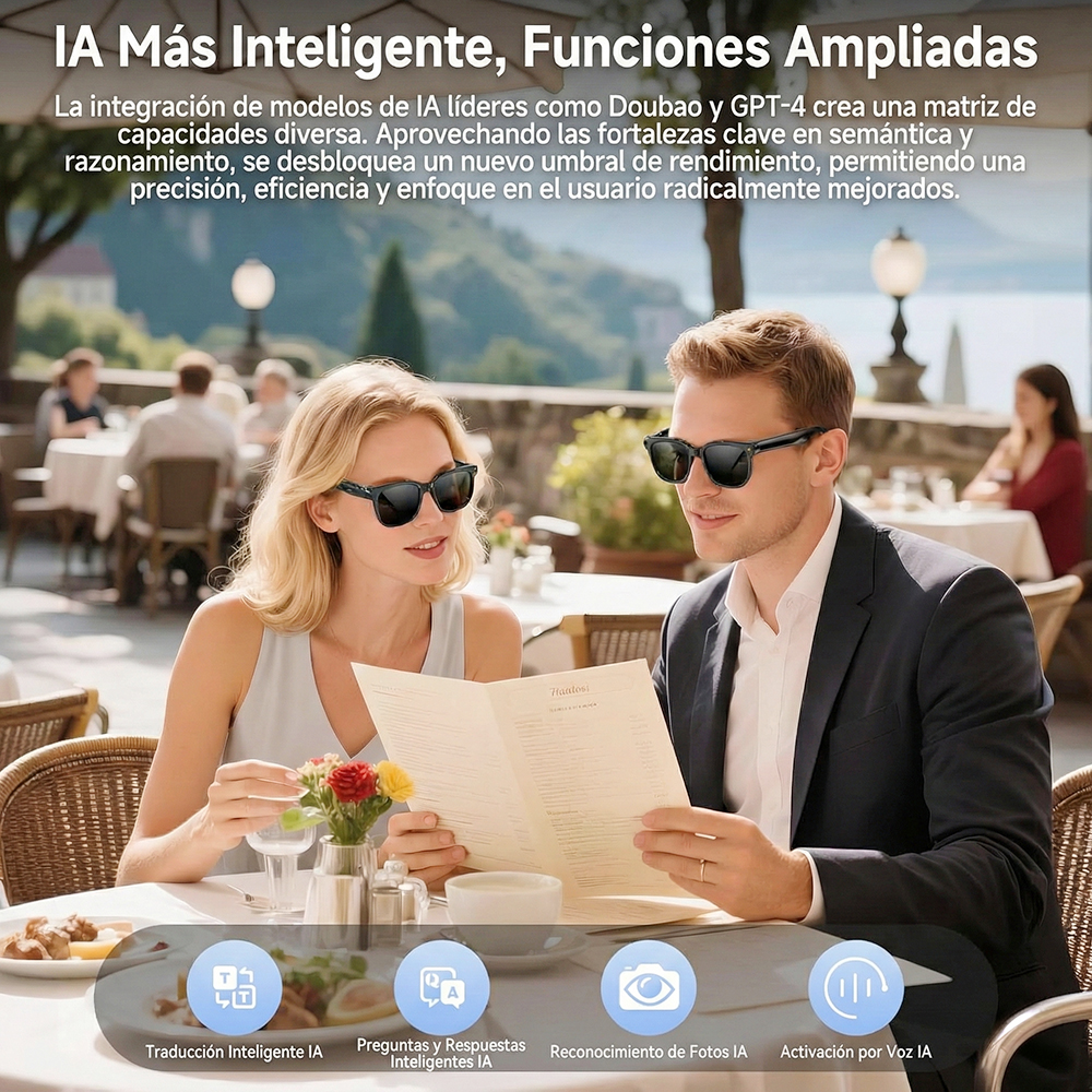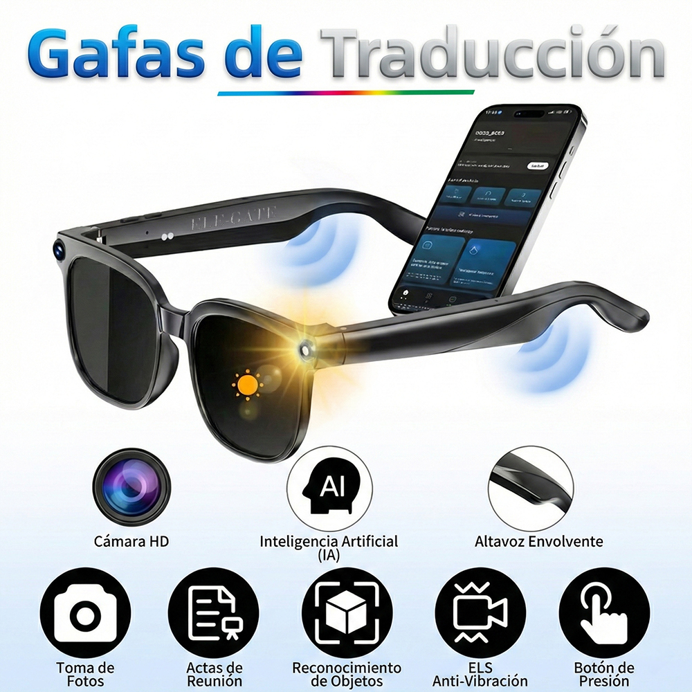 Descubre la nueva generación de Lentes Inteligentes con Tecnología AI, diseñadas para quienes buscan innovación, productividad y estilo en un solo dispositivo. Con cámara HD de 8MP, traducción multilenguaje en tiempo real y llamadas Bluetooth manos libres, son el complemento perfecto para viajes, trabajo y uso diario.