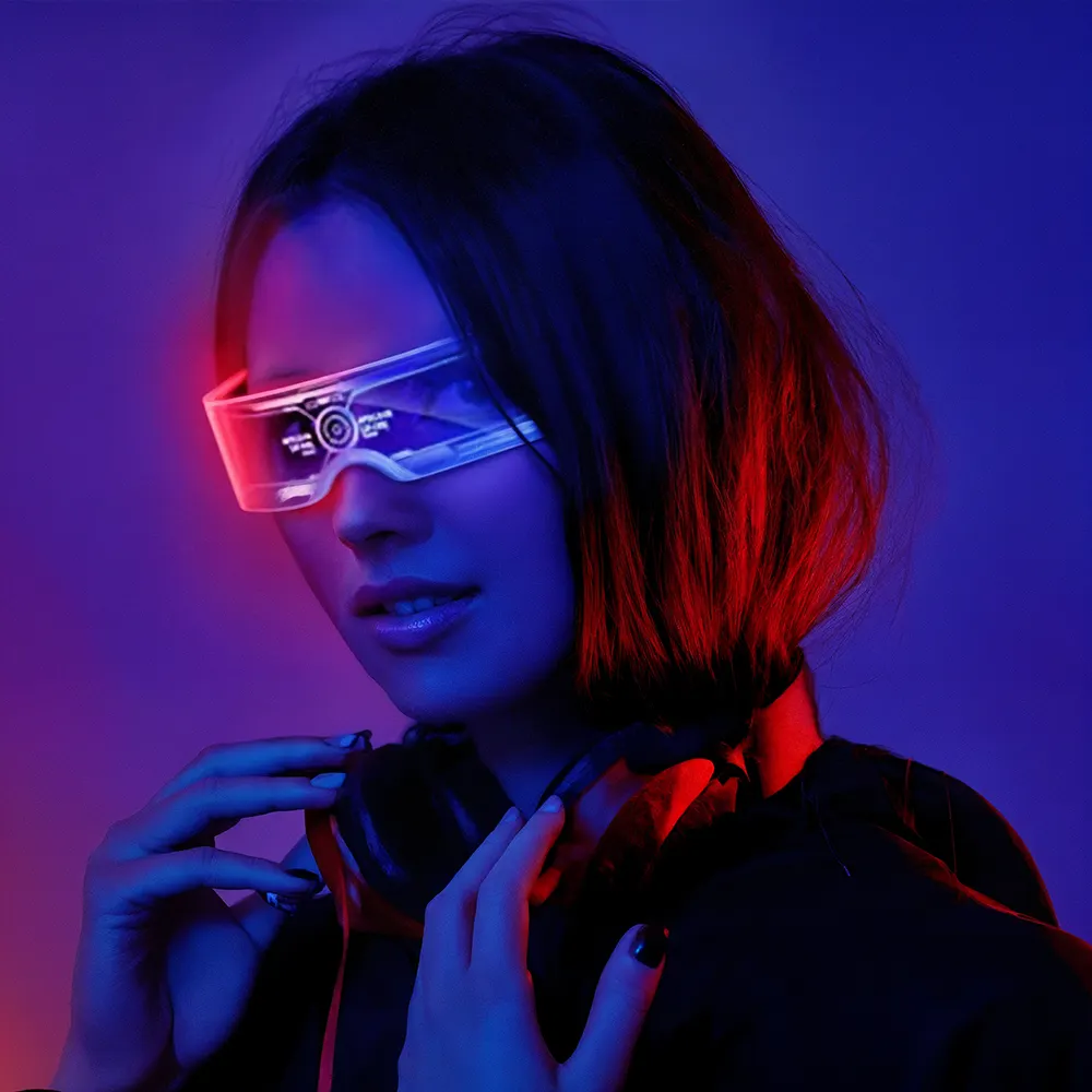 - Anteojos LED para adultos: con estas anteojos Cyberpunk estilo futurista, se ve muy genial cuando se ilumina en un ambiente oscuro. Con divertidas anteojos luminosas LED, serás el centro de atención de la multitud.