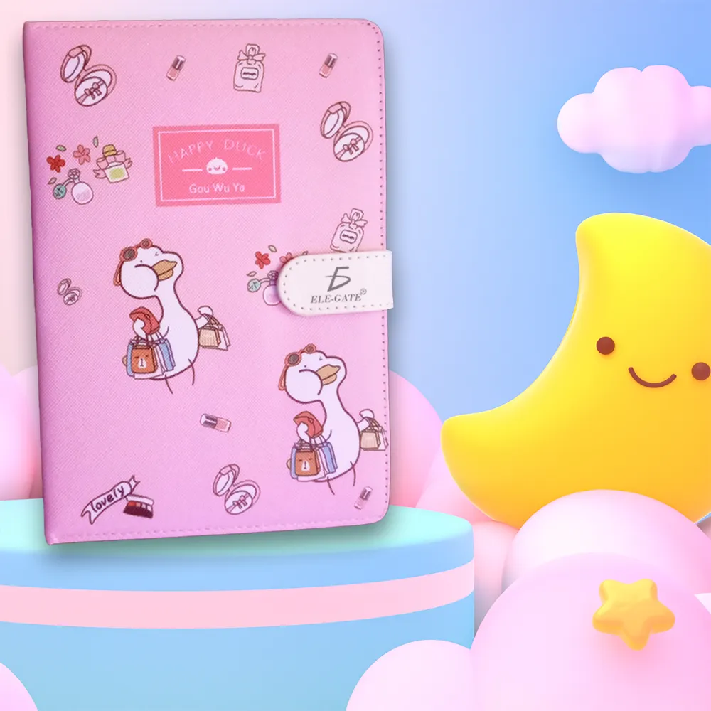 Libreta con Diseño Kawaii con 100 hojas con costura, con broche imantado hojas rayadas antirreflejos y textura acolchonada para tener tus apuntes con estilo y a la moda.