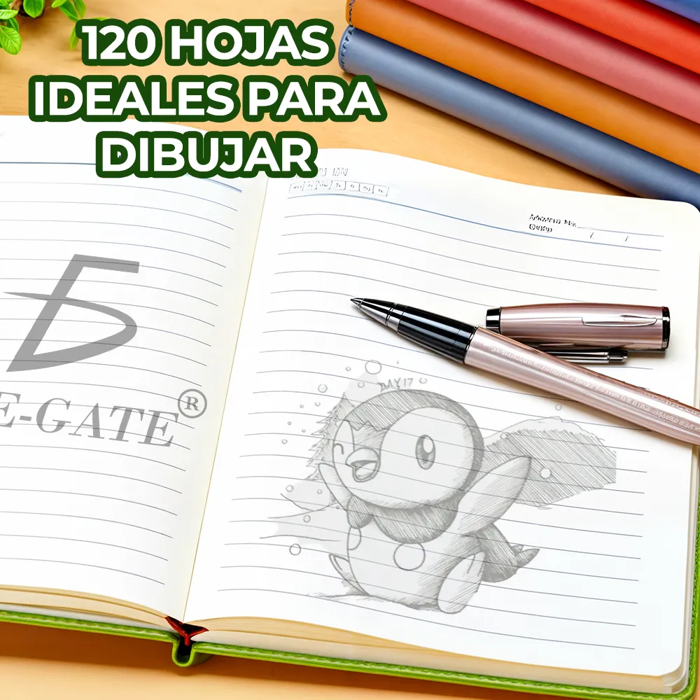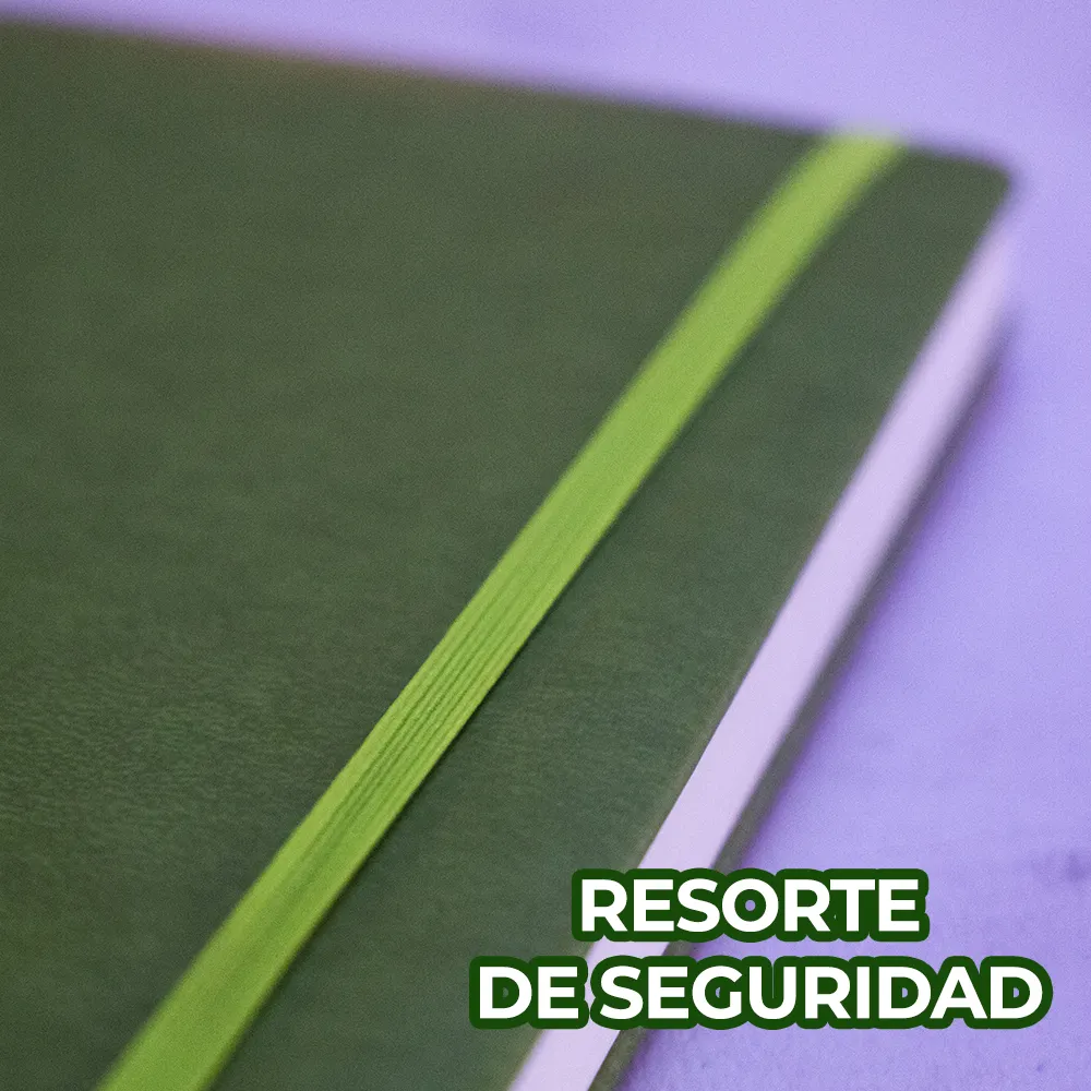 Libreta con Tapa Acolchada y Texturizada con hojas tipo Agenda. Hojas Rayadas anti fluorescencia que facilita la escritura y la lectura evitando los dañinos rayos UV.