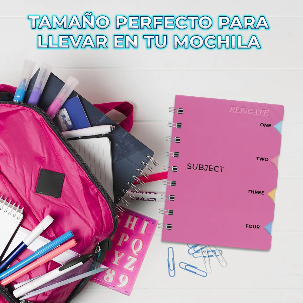 - Separadores de acetato: Incluye 4 separadores de acetato que te permiten organizar tus apuntes por temas o asignaturas, facilitando la búsqueda y la consulta.