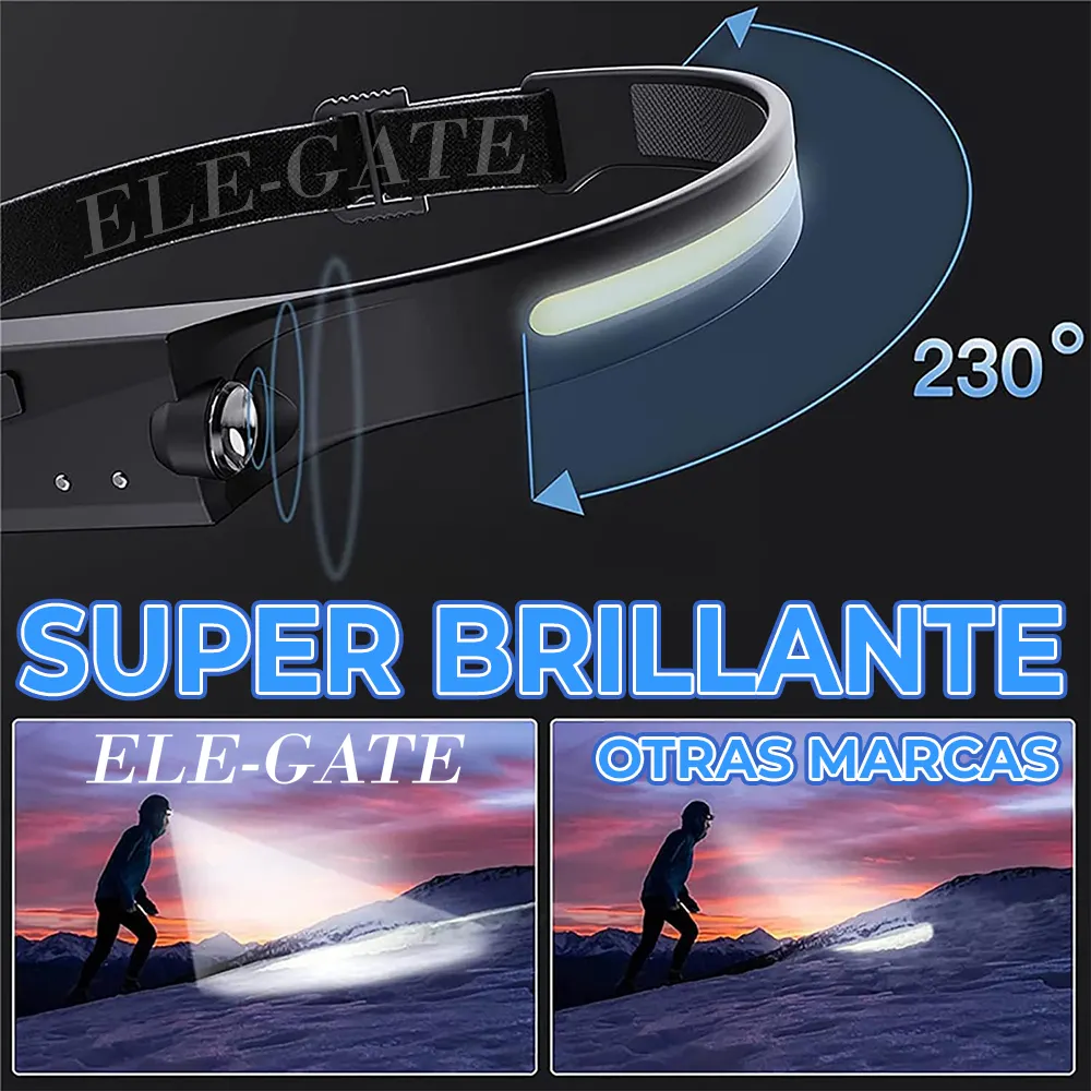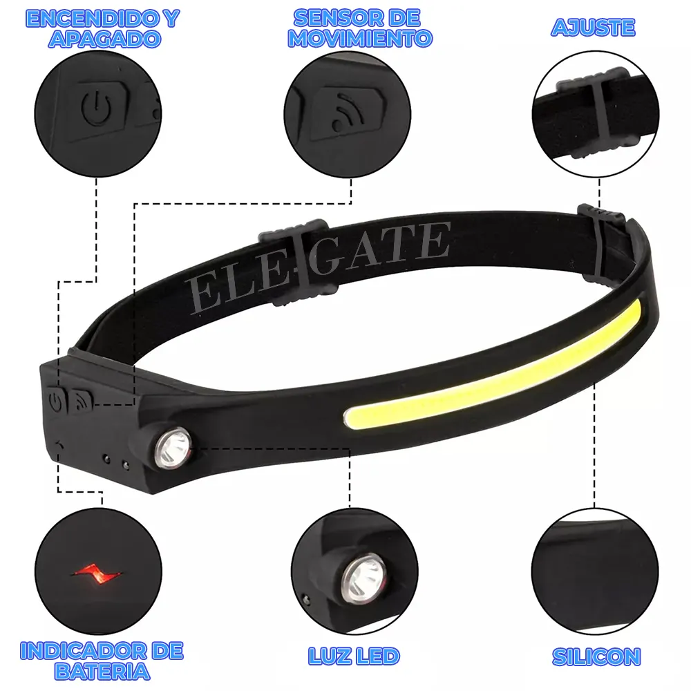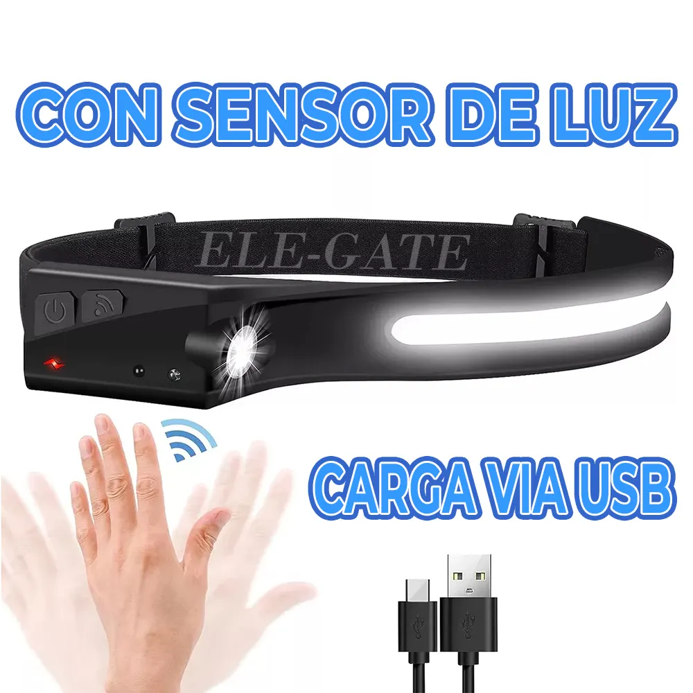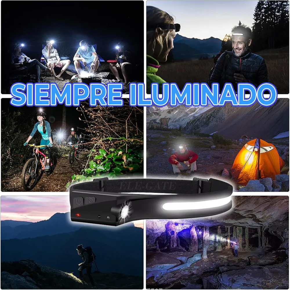 Linterna de Cabeza Recargable USB Haz Amplio y Brillante de 230°. Cuenta con 5 modos ideal para uso en interior o exterior, camping, senderismo y exploración. cuenta con diadema ajustable y reforzada para condiciones extremas.