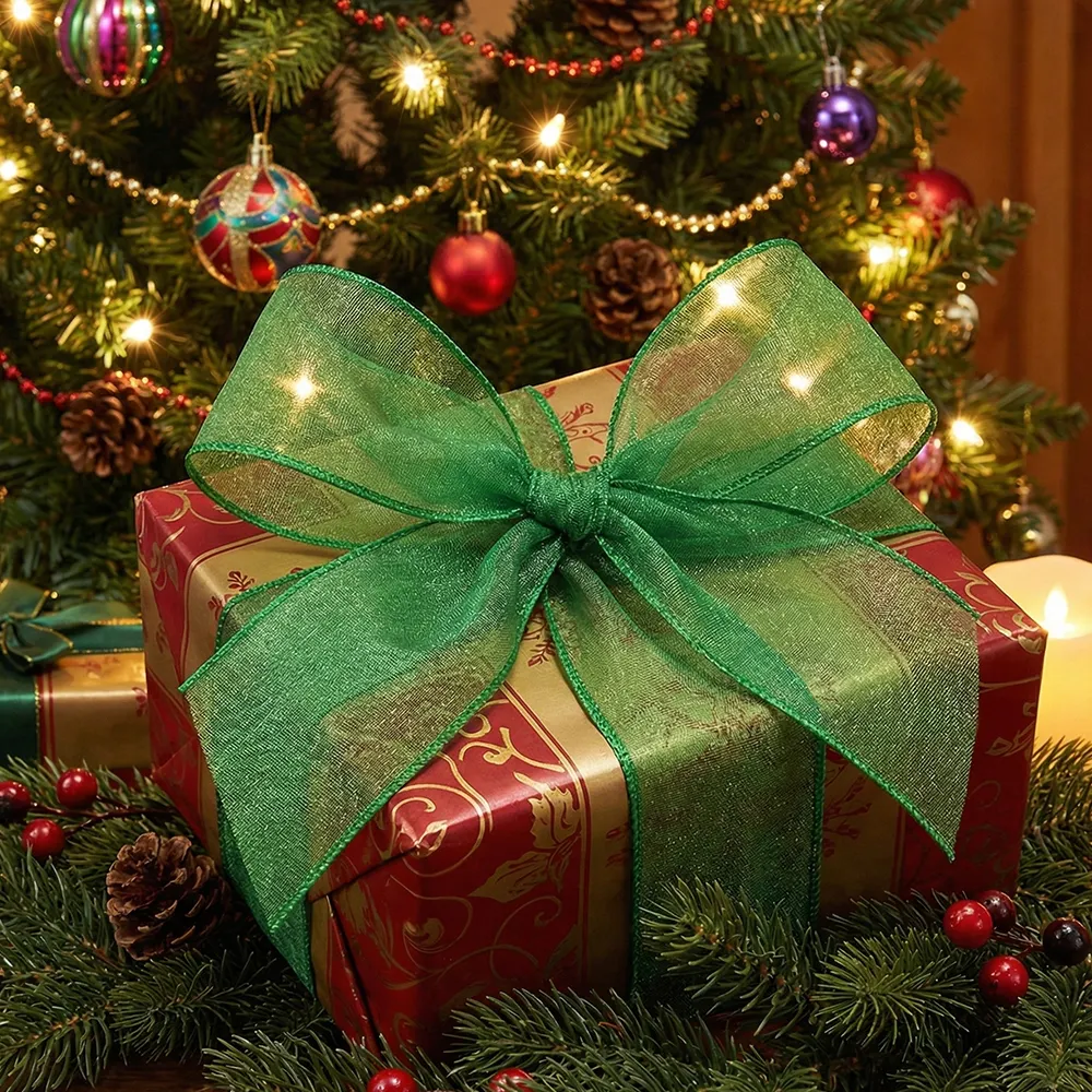 El diseño translúcido con brillo añade un toque elegante y luminoso, ideal para crear moños, lazos y adornos, decorar el árbol de Navidad, ventanas, escaleras, coronas o guirnaldas. También son perfectos para envolver regalos y darles un acabado profesional y festivo.