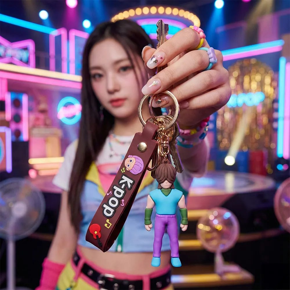 Dale un toque único a tus accesorios con el Llavero de Goma K-Pop Demon Hunter, inspirado en el estilo vibrante y dinámico del mundo idol. Fabricado en goma resistente y con una agarradera de plástico con acabado muy pop, es el complemento perfecto para mochilas, bolsos, estuches o llaves.