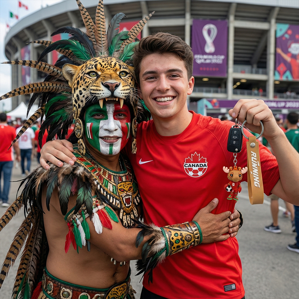 Lleva la pasión por el fútbol a todas partes con este llavero de plástico suave inspirado en las mascotas del Mundial 2026. Su diseño moderno y colorido lo convierte en el accesorio perfecto para estar a la moda y vivir al máximo la emoción del torneo más esperado del mundo.