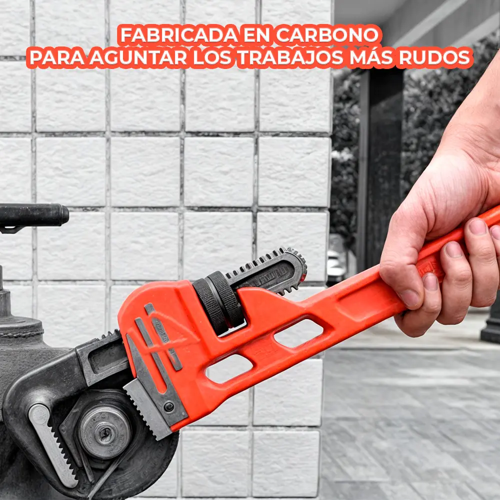 Su mango ergonómico ofrece un agarre cómodo y seguro, ideal para uso pesado y prolongado. Con su diseño robusto y su capacidad para ajustar tuercas y tuberías con facilidad, esta llave inglesa es una herramienta esencial para cualquier caja de herramientas profesional o doméstica.