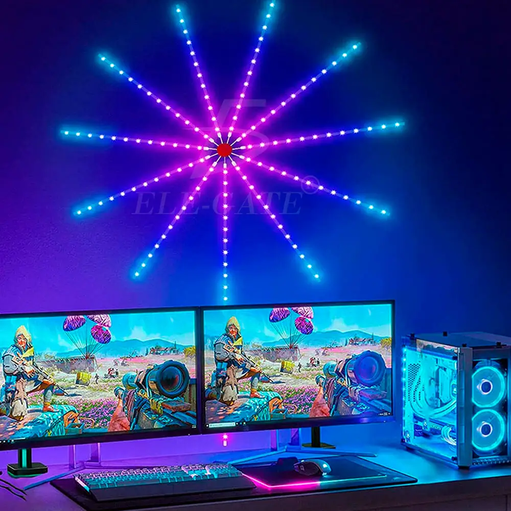 Seguro y fácil de instalar: las luces LED de fuegos artificiales arrancan el papel calcomanía de la tira de la lámpara y la placa de conexión y pégalas en la superficie necesaria. Conecta la alimentación a usar. Nota: la tira de luz de fuegos artificiales no es impermeable, por favor, úsala lejos del agua. Cuando la aplicación no pueda controlar la luz, comprueba si la tira de luz está conectada correctamente a la aplicación.