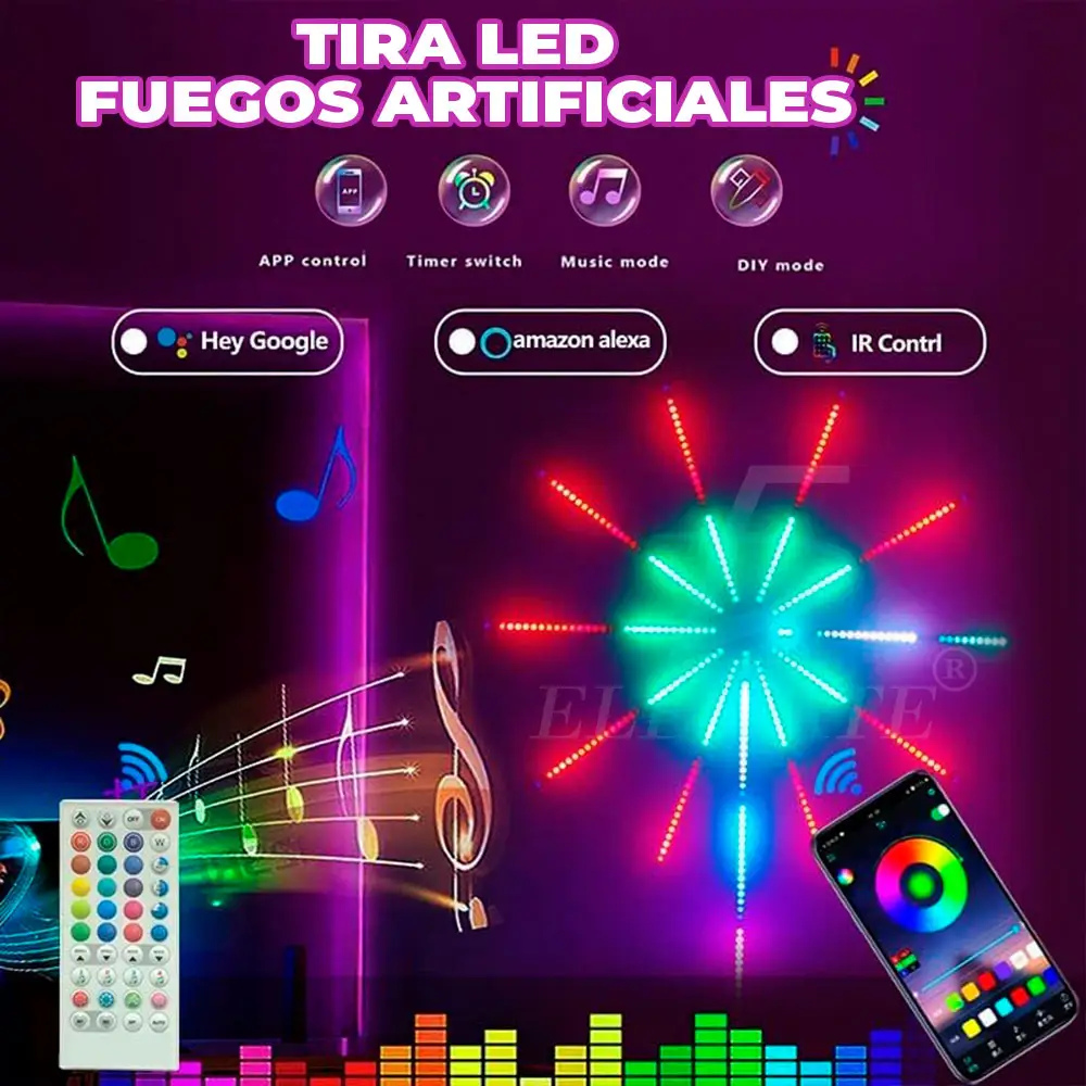 Luces de Fuegos Artificiales Inteligentes Para Interiores Con Control Remoto Y Control de Aplicación.