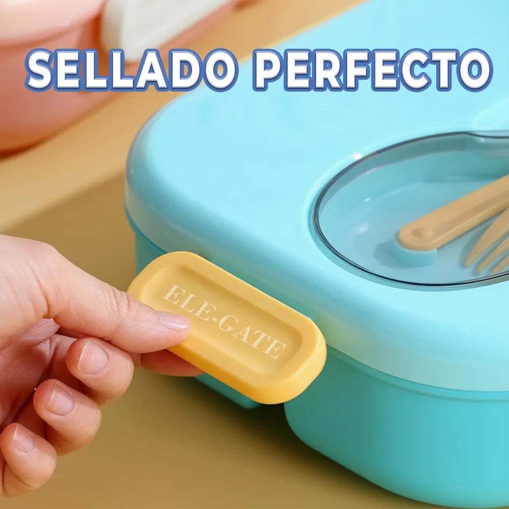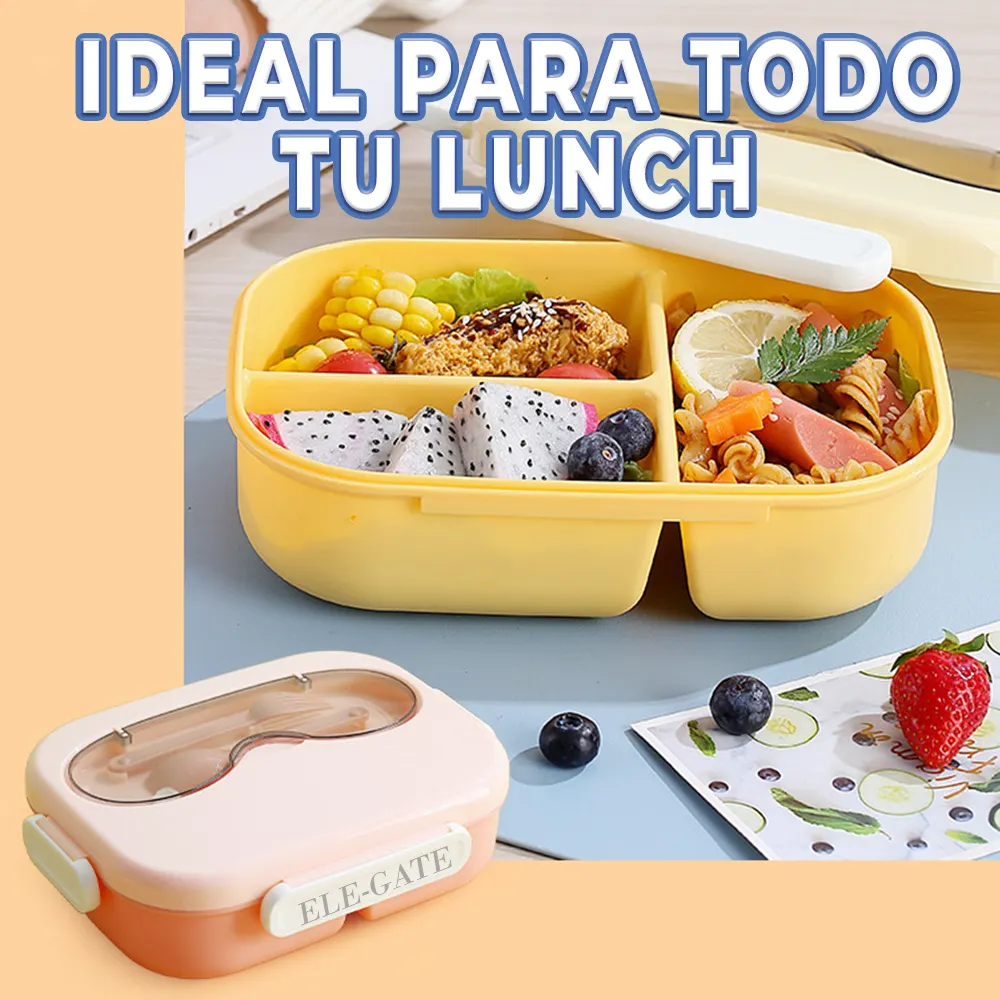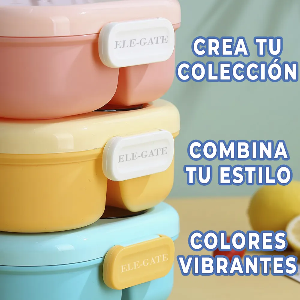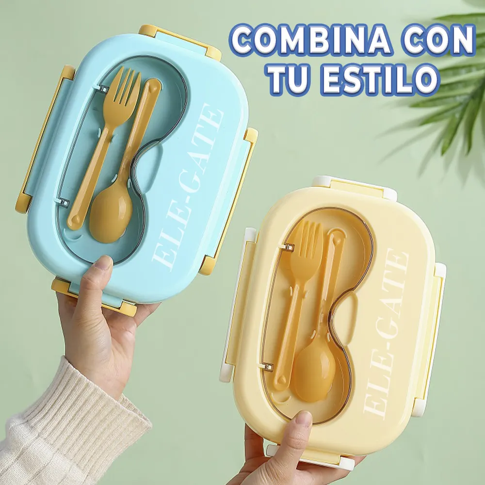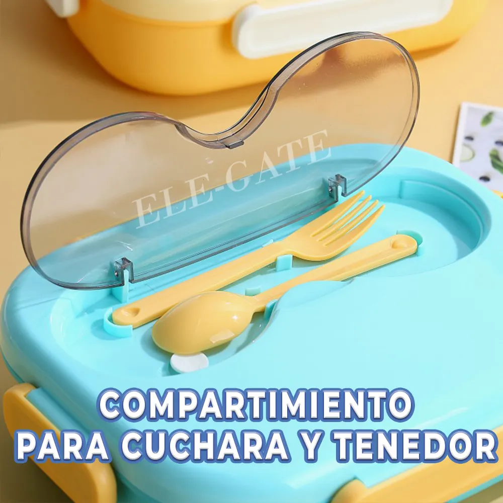 - Incluye compartimento separado para cuchara y tenedor, para una experiencia de comida completa.
