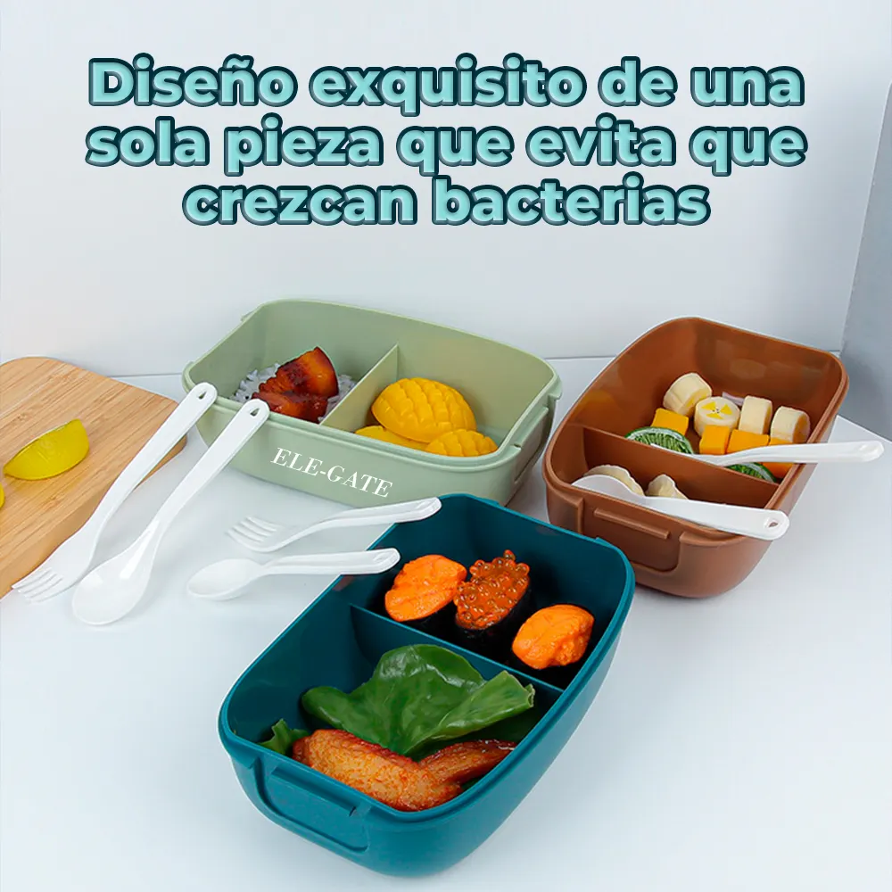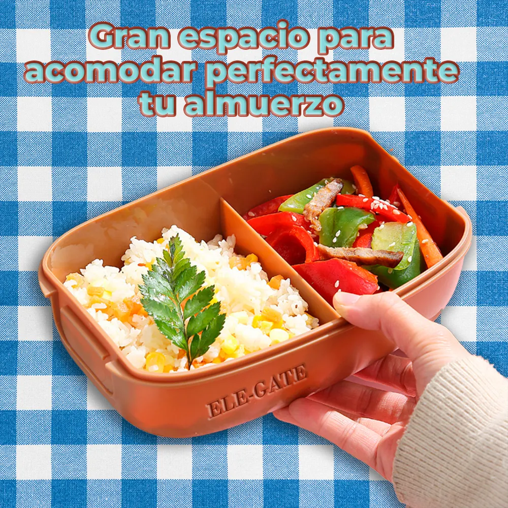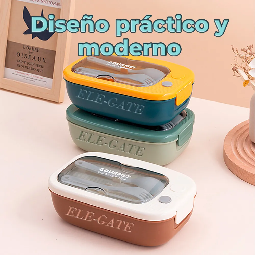 Optimiza tus comidas diarias con nuestra Lunch Box, una solución versátil y práctica para llevar tus alimentos a cualquier lugar. Equipada con separador y cubiertos, esta lonchera es perfecta para organizar tus comidas, manteniendo ensaladas y snacks frescos y deliciosos. El compartimento a prueba de polvo garantiza una experiencia de comida limpia y sin complicaciones. Además, el material apto para microondas facilita el calentamiento de tus comidas en la oficina, la escuela o durante actividades al aire libre. ¡Haz de tus almuerzos una experiencia cómoda y deliciosa con esta caja de almuerzo hermética y funcional
