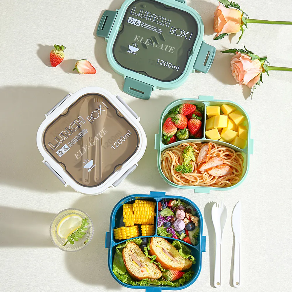 Lunch Box con Compartimiento para cubiertos a prueba de fugas, incluye cuchara y tenedor