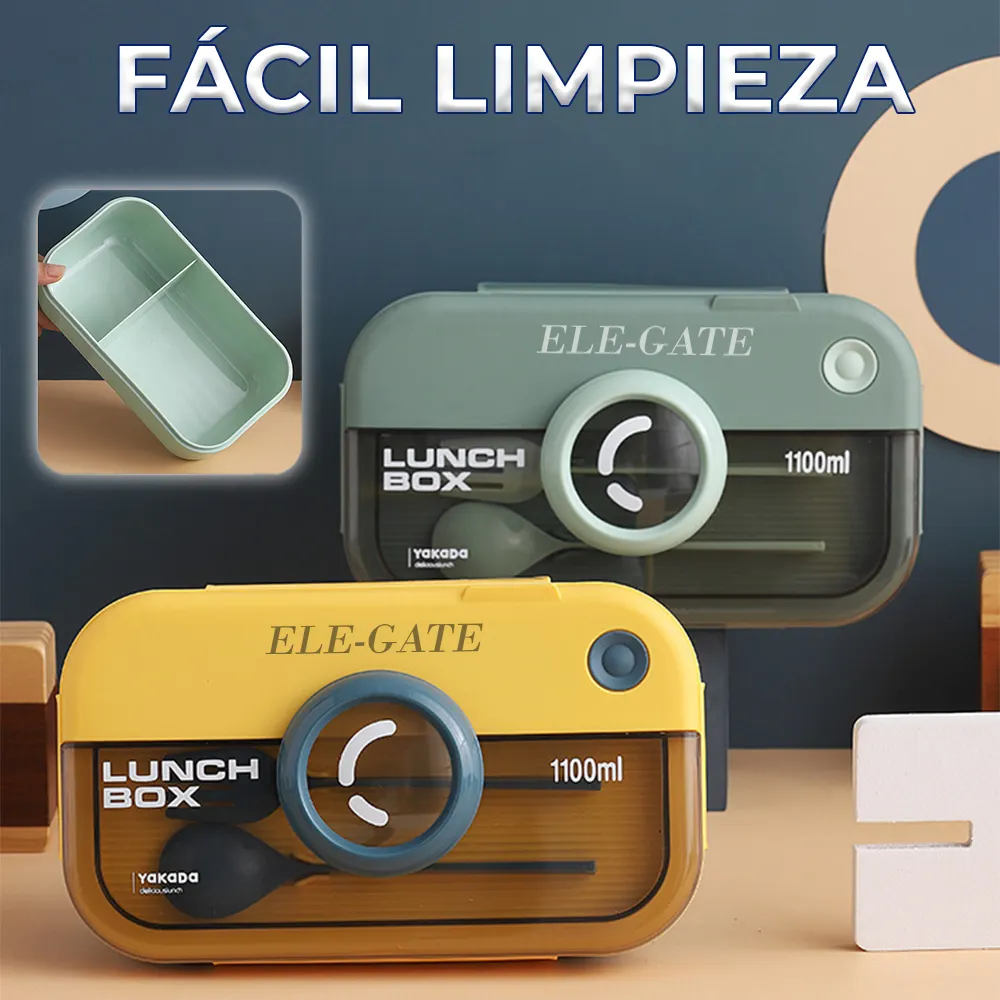 Lunch Box en forma de Cámara Comida Lunch Box con Cubiertos 1100ml