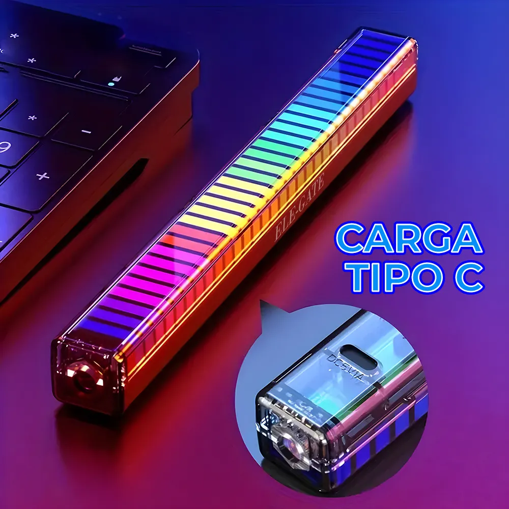 Luz Led RGB con diseño trasparente al costado logrando un mayor efecto ambiental. Con modo Rítmico para seguir la música y con 4 modos mas de colores que reflejan el estado de animo. Colores vividos y acabo redondeado le dan una apariencia moderna y elegante. Con carga usb tipo C recarga su batería que dura entre 3 y 4 horas de uso continuo.