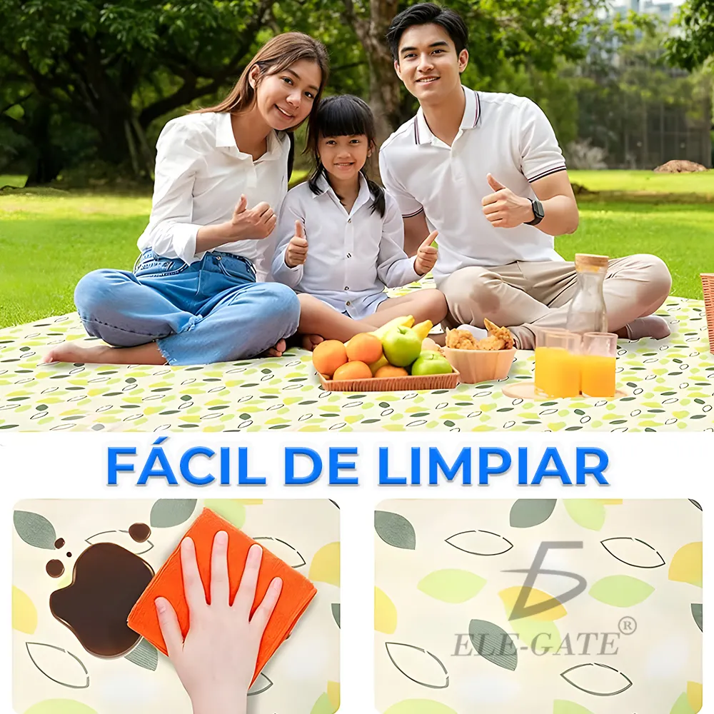 - Impermeable y resistente: La superficie impermeable protege de la humedad del suelo y mantiene a los usuarios secos y cómodos.