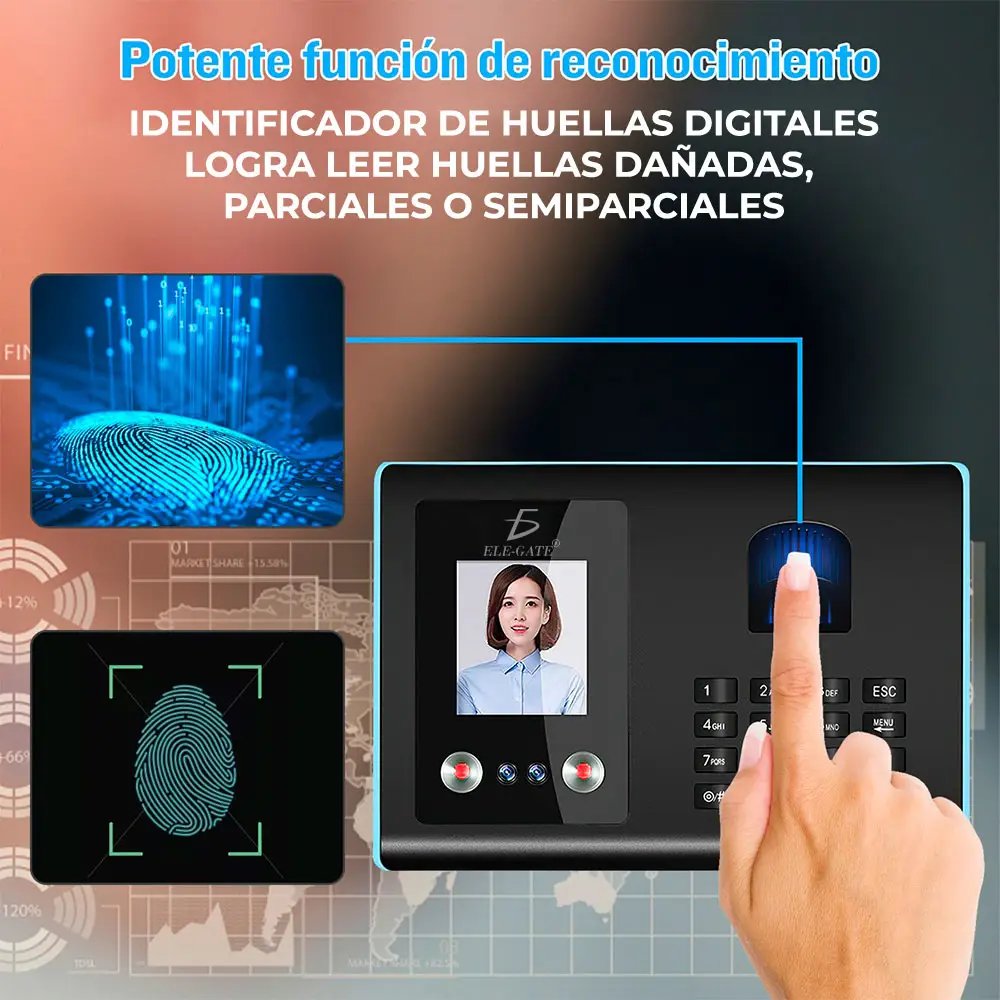 Maquina Reloj Checadora con Identificador de Huellas Y Cámara Frontal