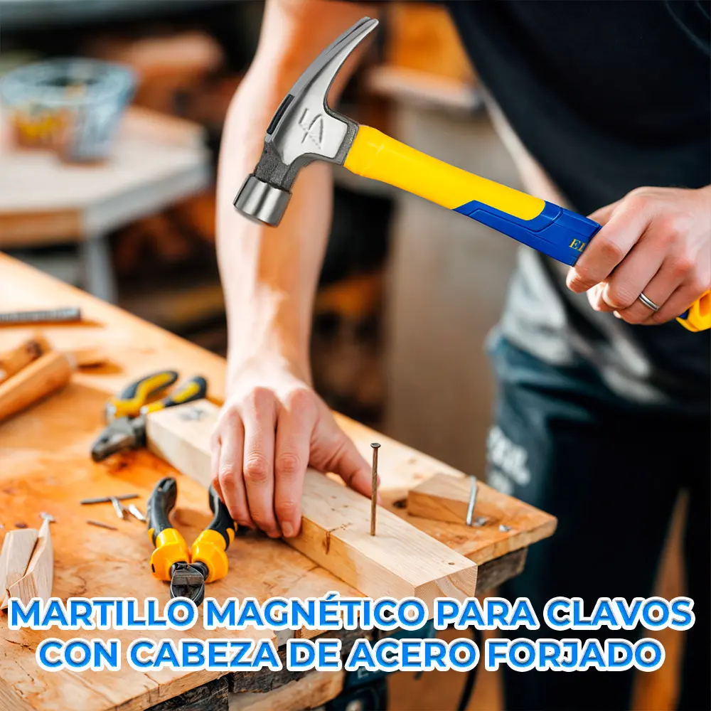 Martillo con Cabeza Imantada y Cuerpo de Fibra de Vidrio Super Resistente con Orejas de Acero Forjado. Ideal para trabajos finos de carpintería o para acabados.