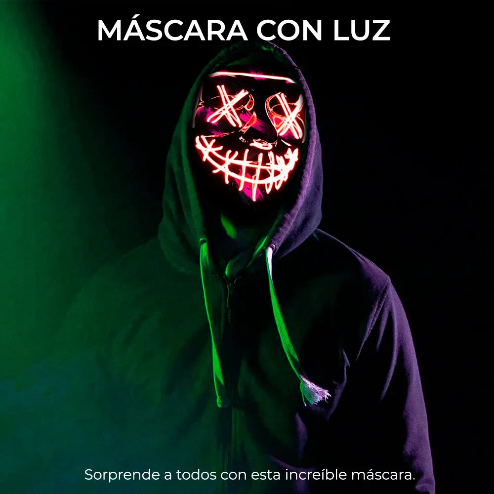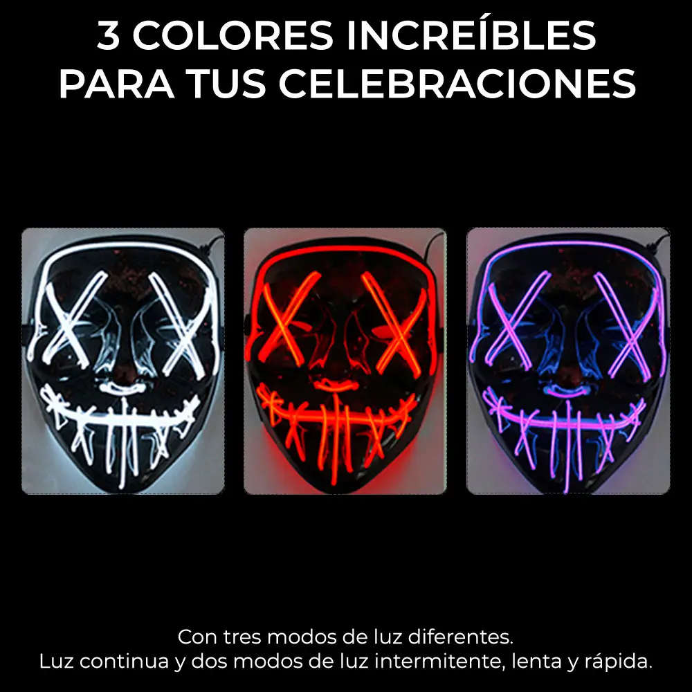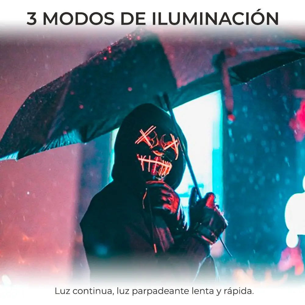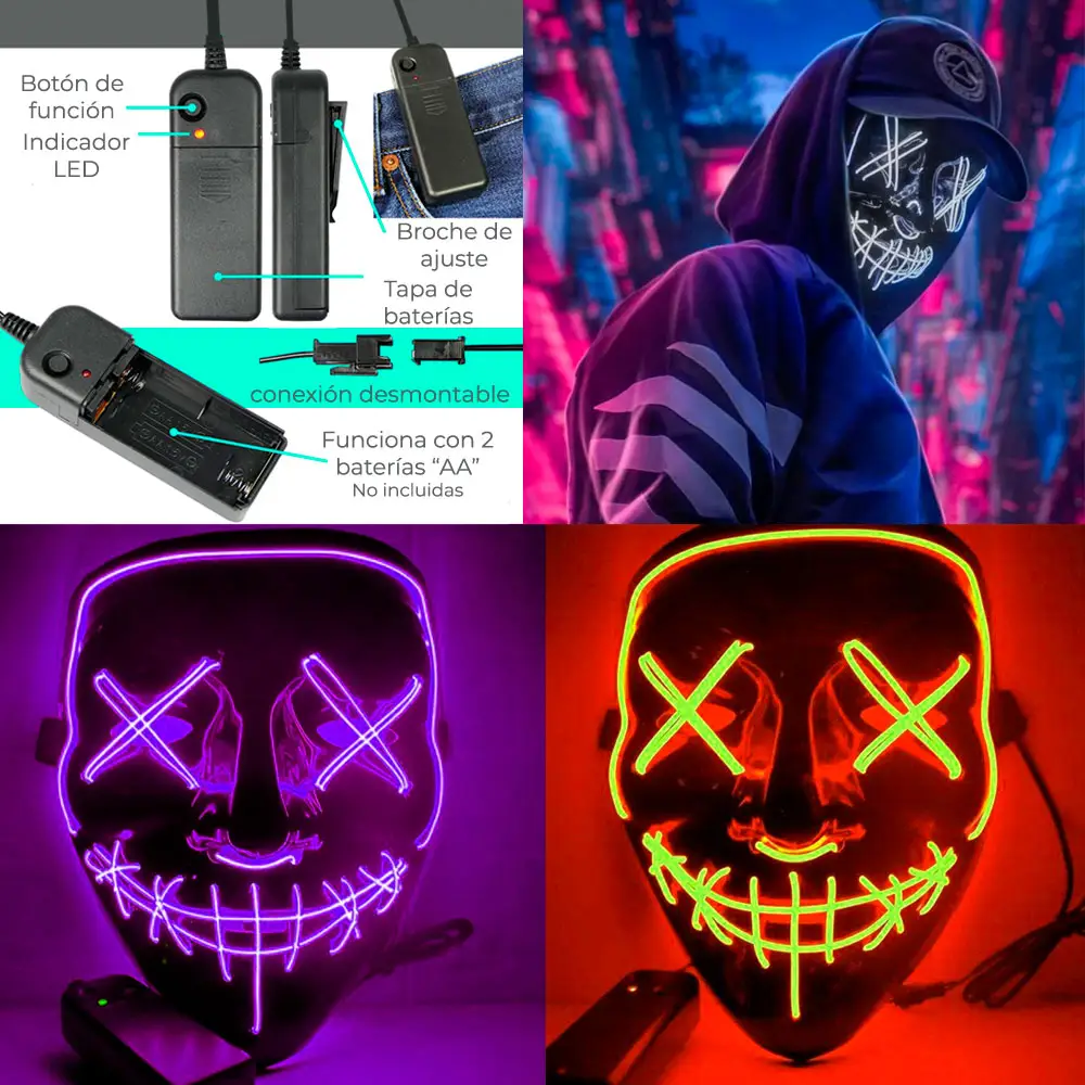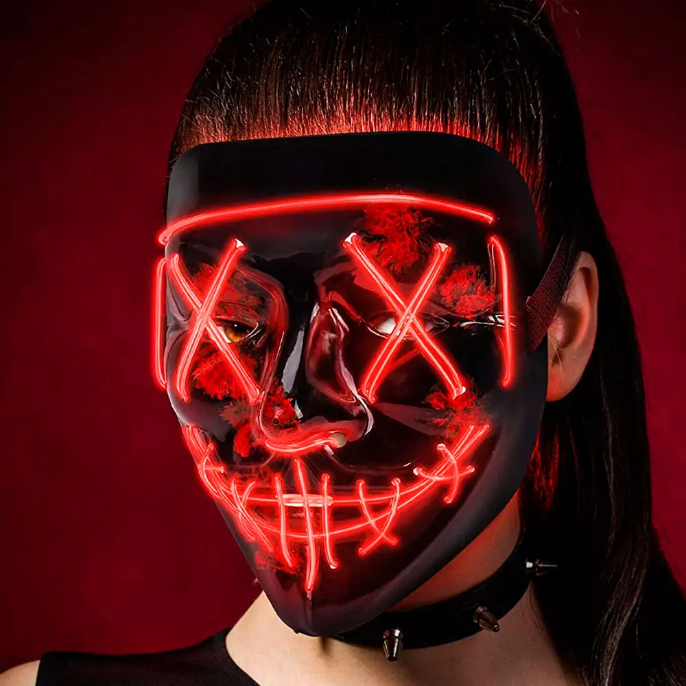 La máscara de Halloween está hecha con material de primera calidad y cable de luz fría, es seguro de usar. Sin olor, la iluminación constante y no se calienta incluso está encendida toda la noche. Puede sujetar el paquete de energía en su bolsillo o en su ropa. Máscara Luz Led La Purga