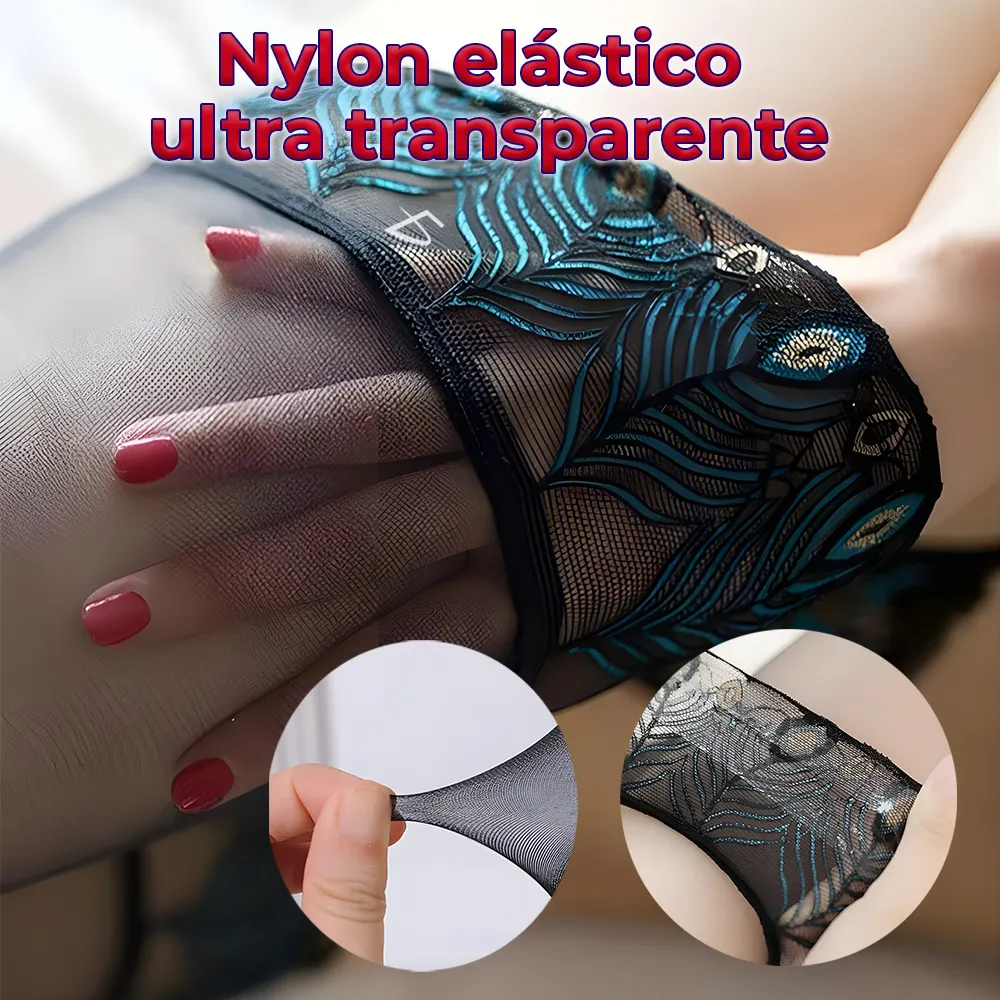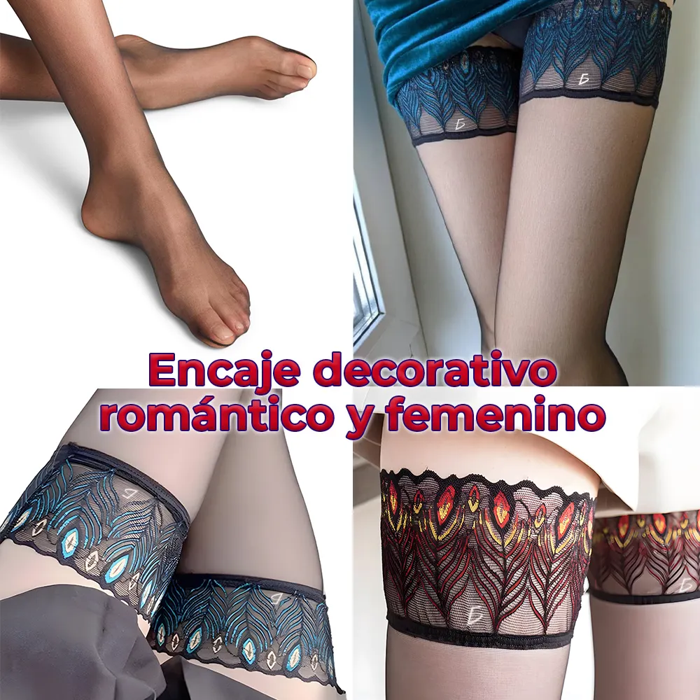 Medias de Muslo de Nailon fino con Encaje de Pavo Real