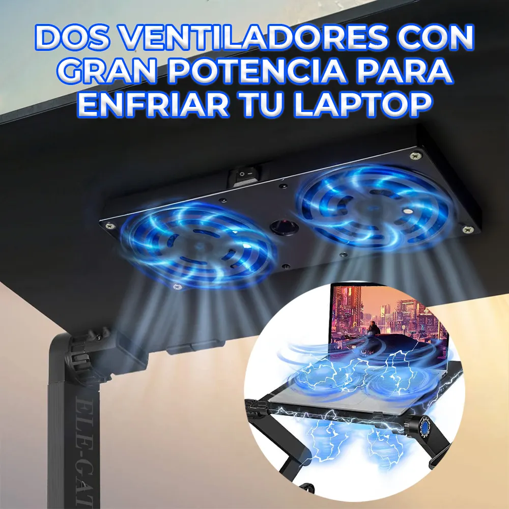 Ideal para cama, sofá o cualquier superficie, esta mesa te ofrece la comodidad y funcionalidad que necesitas. Su diseño reclinable te permite encontrar el ángulo perfecto para una postura ergonómica y una experiencia óptima. Olvídate del sobrecalentamiento con sus dos grandes ventiladores de refrigeración, que mantienen tu laptop fresca incluso durante largas sesiones de uso. Además, incluye un práctico soporte para mouse, para que tengas todo lo que necesitas al alcance de la mano.