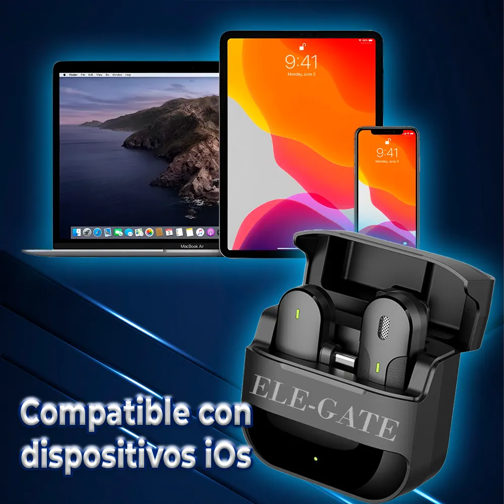 Micrófono Inalámbrico Lavalier con estación de carga. Compacto y Liviano, con una gran calidad de audio y con Bluetooth super estable que garantiza una grabación sin interrupciones ni interferencias