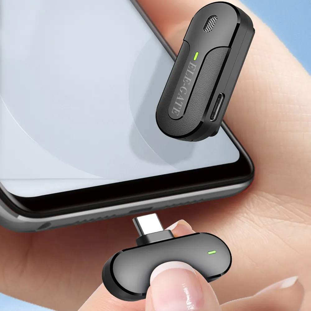 - Micrófono lavalier inalámbrico tipo C para grabación de audio manos libres.