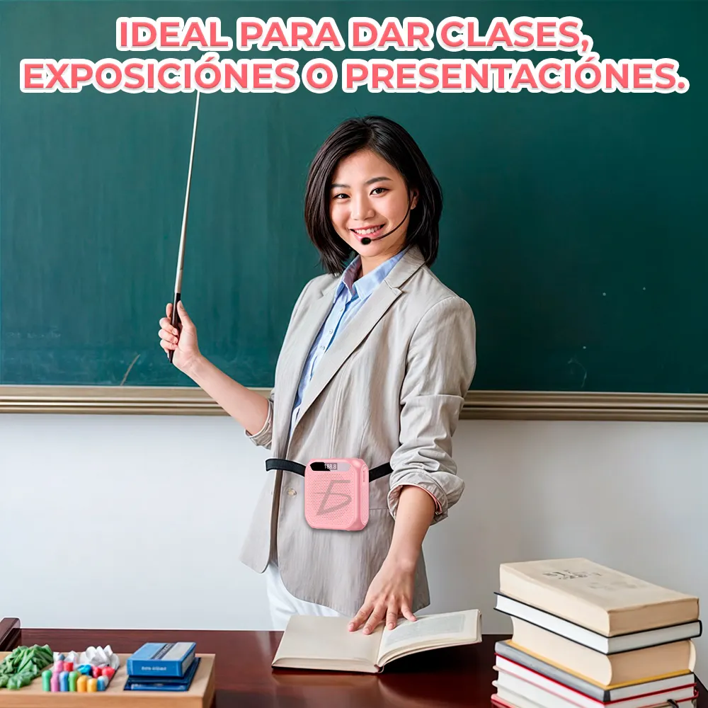 El Mini Amplificador de Voz con Diadema y Micrófono Bluetooth es una herramienta práctica y eficaz para amplificar tu voz en cualquier situación. Con un diseño portátil y compacto, incluye un lector de tarjeta Micro SD y radio incorporado, lo que lo convierte en una opción versátil para exposiciones, guías de turistas o vendedores ambulantes. Su conexión Bluetooth te permite transmitir música o contenido sin cables, y la diadema con micrófono asegura comodidad durante largas horas de uso. Ideal para quienes necesitan proyectar su voz sin esfuerzo, con un sonido claro y potente.