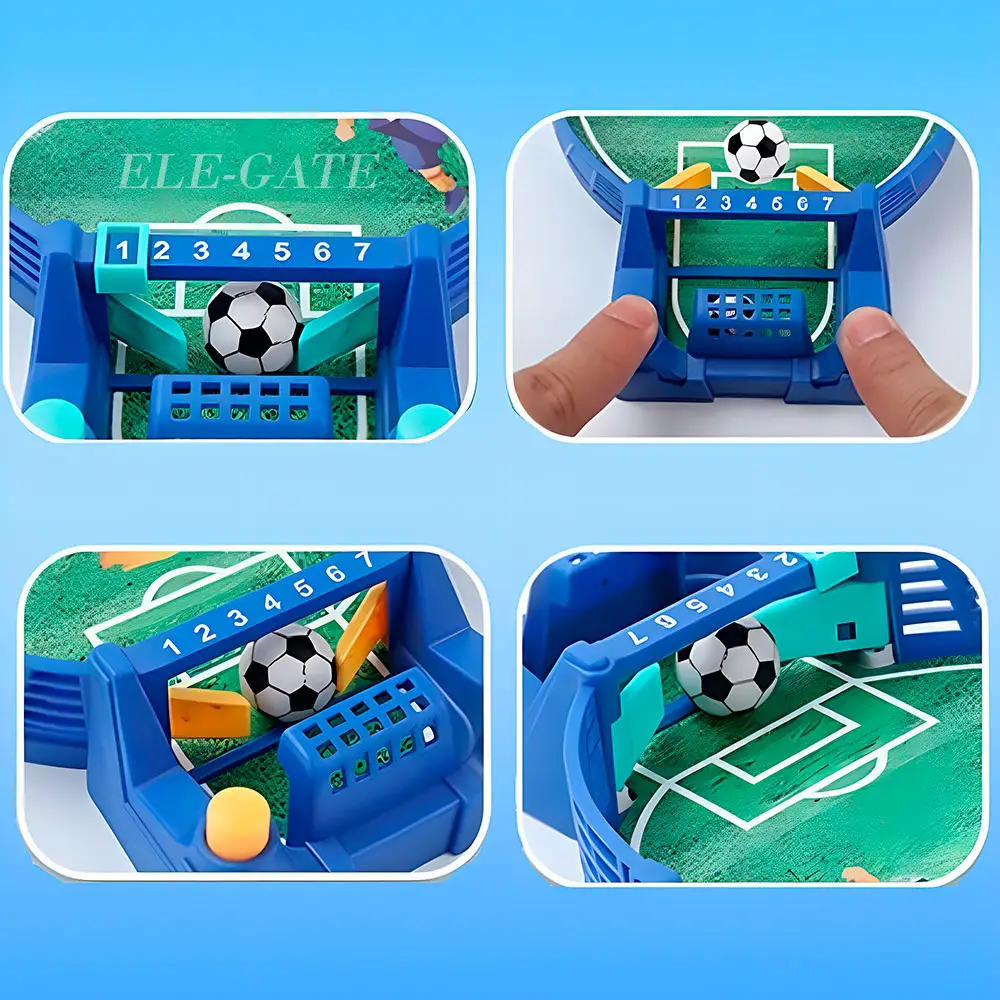 Experimenta la emoción del fútbol en un mini futbolín de mesa. Hecho con material ABS de alta calidad, cada detalle está meticulosamente diseñado para proporcionar una experiencia auténtica. Su diseño de campo de fútbol simulado y colores vibrantes ofrecen la emoción del juego real, brindando horas de diversión para niños y adultos.