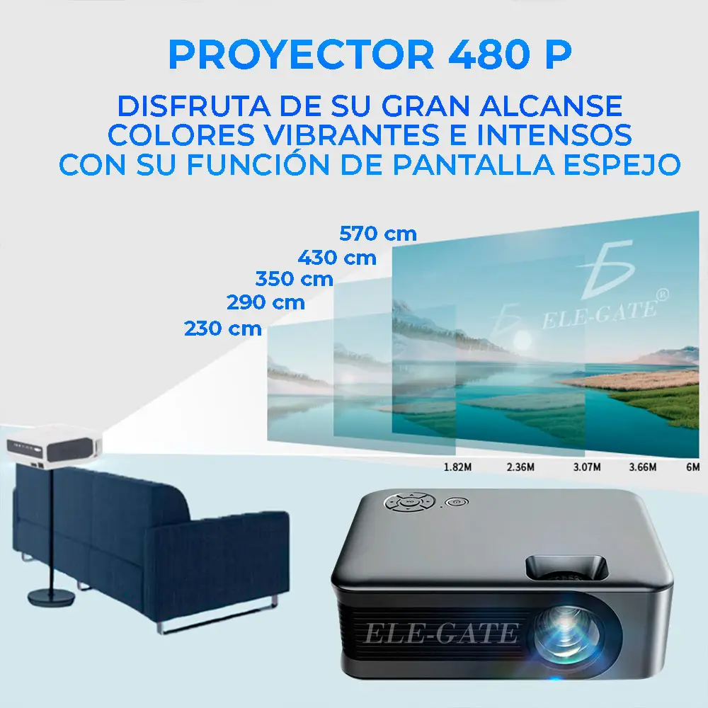 - Rango de distancia de proyección: 0.5 m – 3.6 m