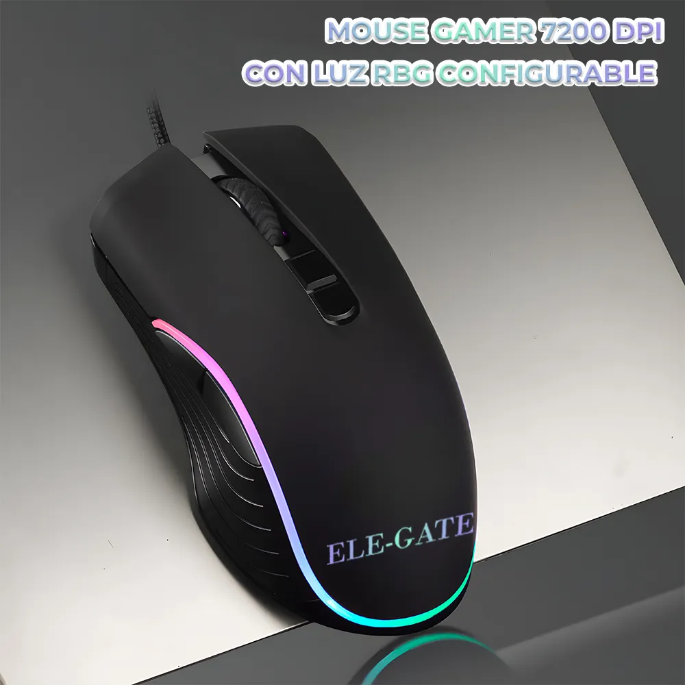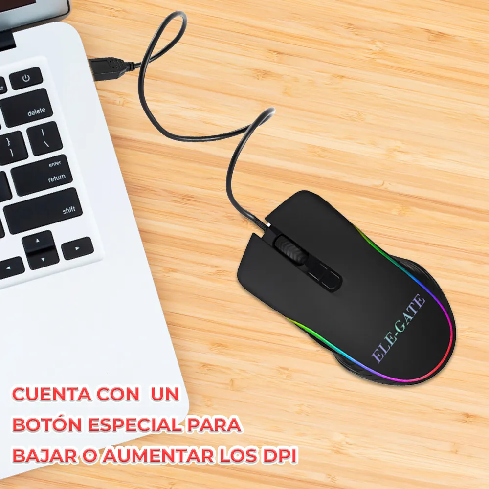 Mini Ratón Óptico USB con Cable para Computadora con Boton para Ajustar DPI con Luz RGB. Ideal para a completar tu set up y gracias a su diseño ergonómico podrás jugar muchas horas o realizar cualquier trabajó o diseño en la computadora.