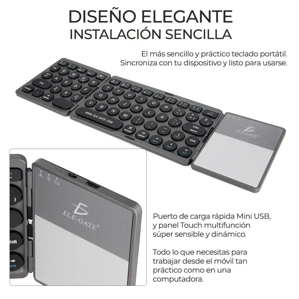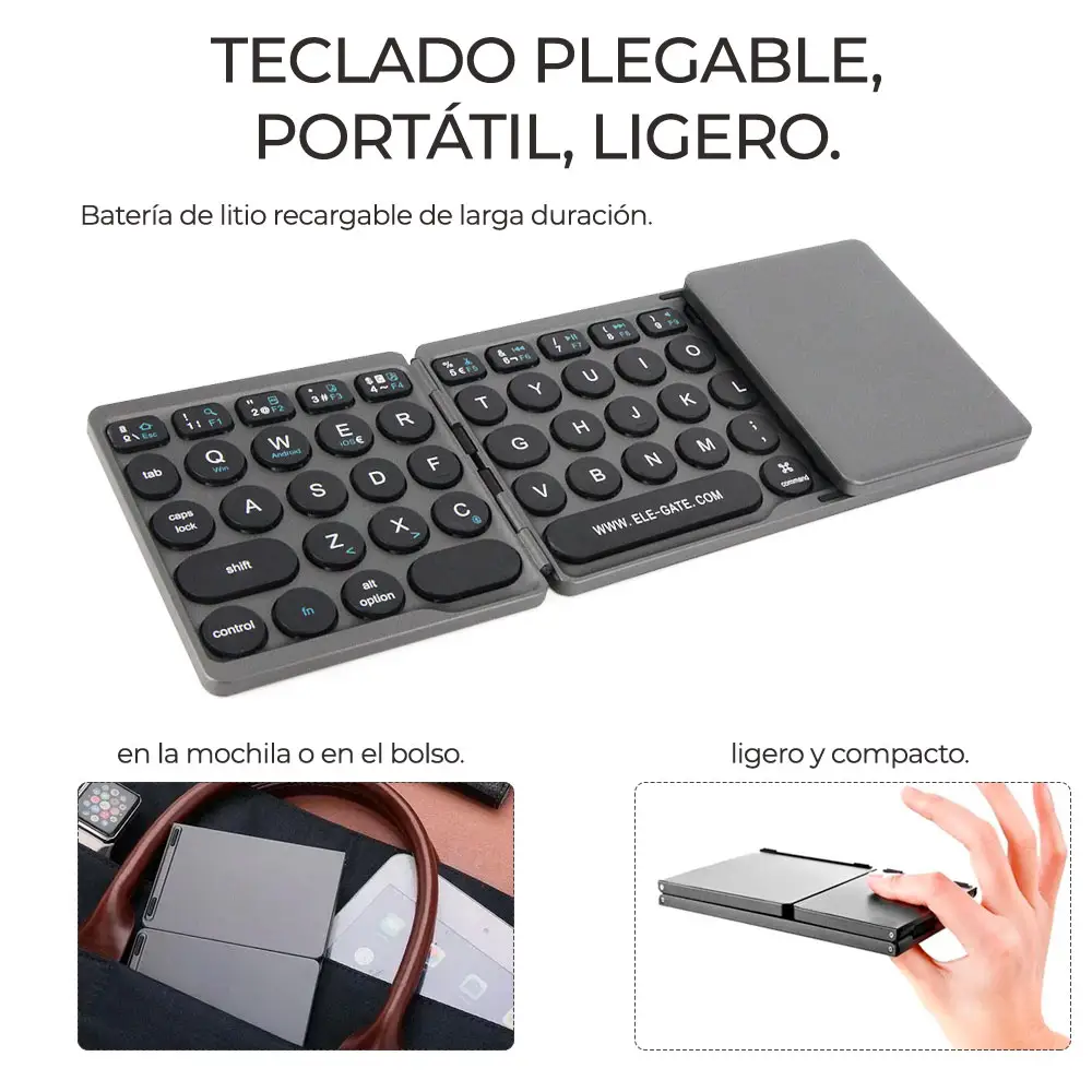 Teclado Inalámbrico Bluetooth Plegable Recargable Con Touchpad