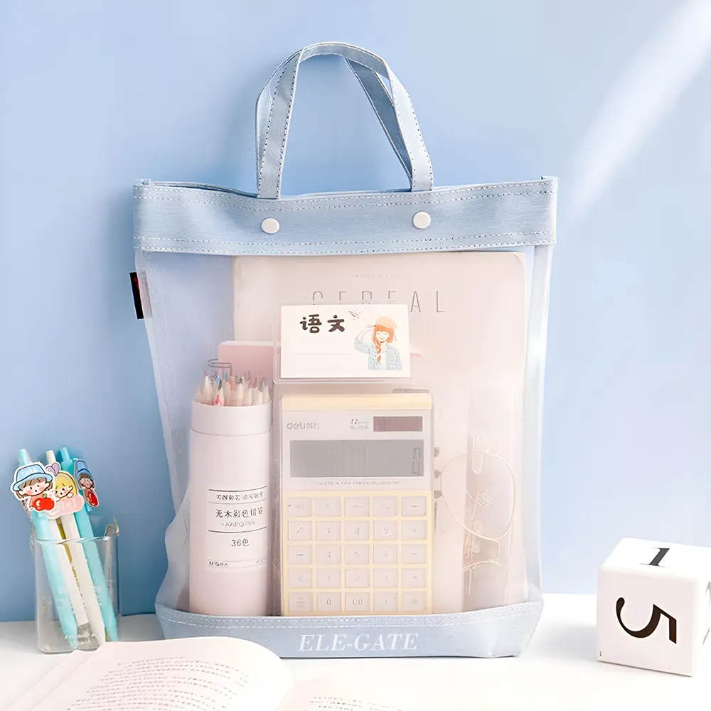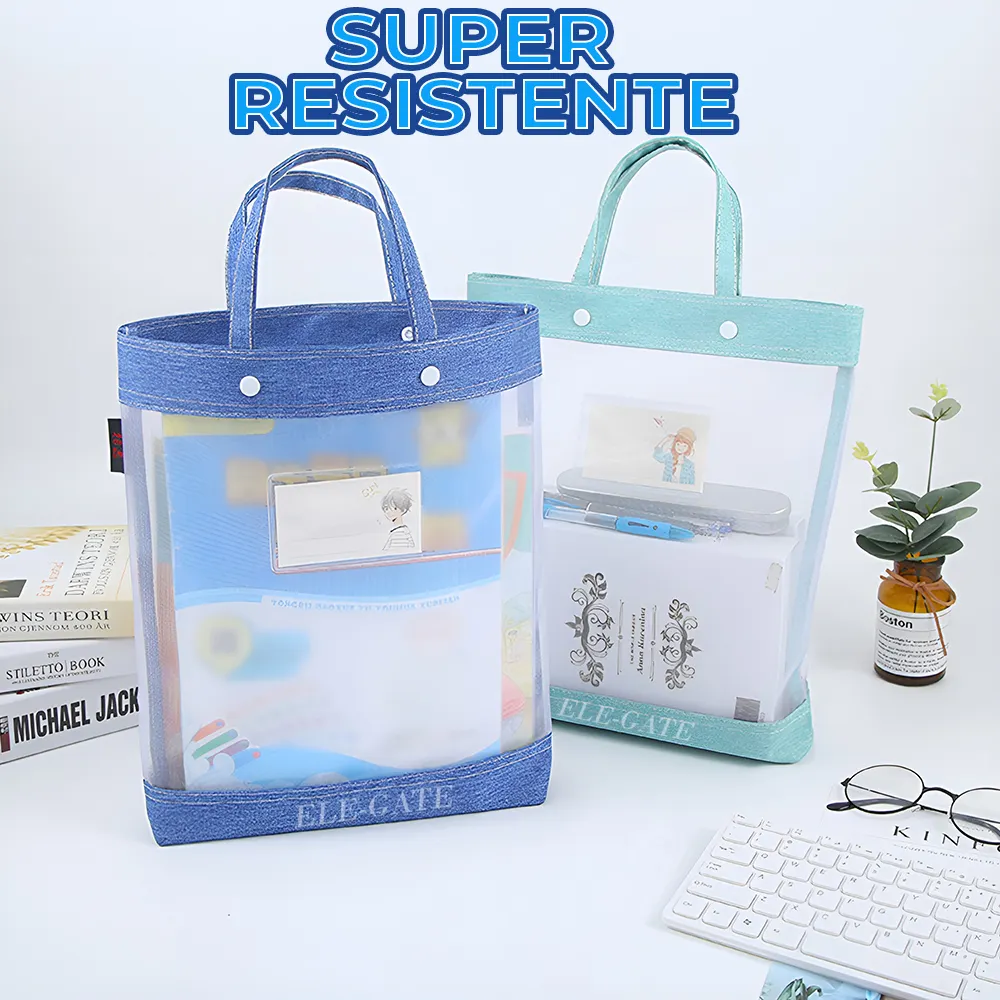 - Transparente con Malla Reforzada: Ofrece durabilidad y resistencia mientras permite ver el contenido.