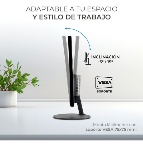 Disfruta de imágenes nítidas y colores extraordinariamente vivos gracias a la tecnología Full HD y el panel VA, que ofrece ángulos de visión amplios y excelente contraste. Los parlantes integrados te permiten prescindir de dispositivos externos, manteniendo tu espacio limpio y organizado. Su diseño reclinable se adapta a tu postura ideal, reduciendo la fatiga visual durante sesiones prolongadas de uso.