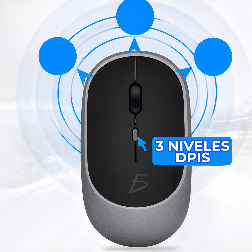 - DPI ajustable: 800 / 1200 / 1600 – ideal para trabajo, navegación y juegos ligeros