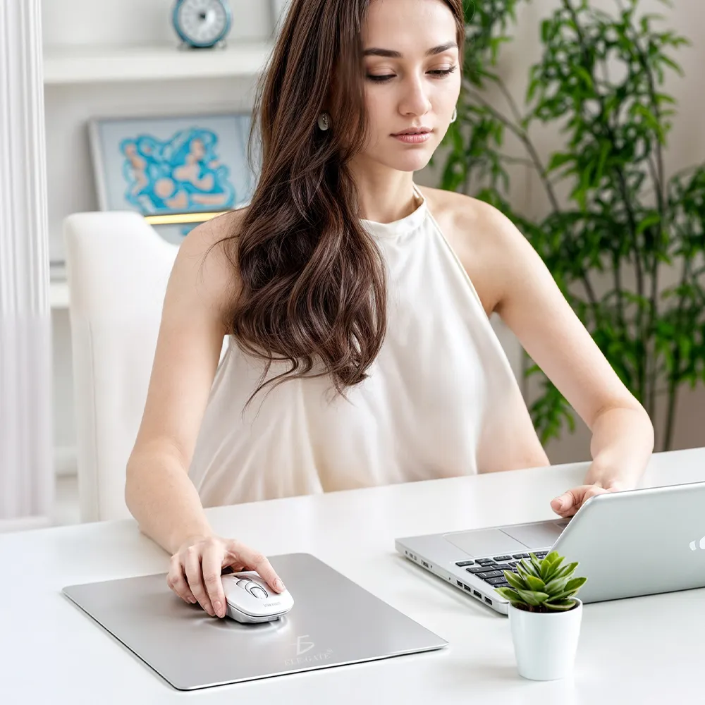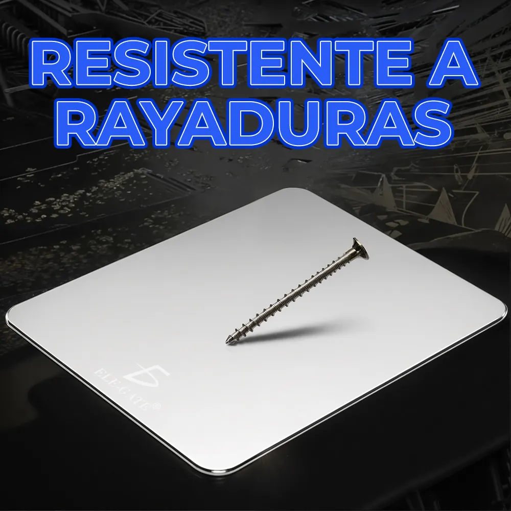 Experimenta la máxima precisión y durabilidad con nuestra Alfombrilla de Mouse de Aluminio. Esta alfombrilla única combina un diseño delgado y elegante con una construcción resistente al agua, ideal para el uso diario en la computadora portátil, computadora y PC. El acabado plateado agrega un toque de estilo a tu espacio de trabajo, mientras que la base antideslizante garantiza que la alfombrilla permanezca en su lugar durante el uso. Ya sea para el trabajo o el juego, nuestra alfombrilla de mouse de aluminio Ele-Gate es la elección perfecta para una experiencia de navegación sin igual.