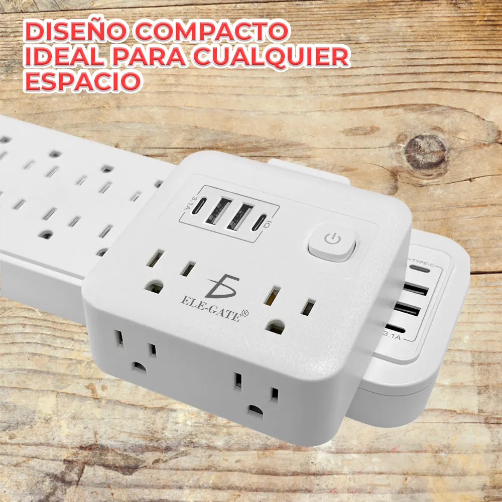 Optimiza tus espacios con el Multi Contacto 8 en 1, una solución todo-en-uno que combina 4 tomas de corriente, 2 puertos USB y 2 puertos Tipo C, ideal para el hogar o la oficina. Equipado con un botón de encendido de seguridad y una potencia de salida de 5V / 3.4A, este adaptador te permite cargar múltiples dispositivos simultáneamente, desde gadgets hasta accesorios electrónicos, con total comodidad y protección. Su diseño compacto y funcional asegura que tendrás siempre una fuente de energía eficiente y segura a tu alcance.