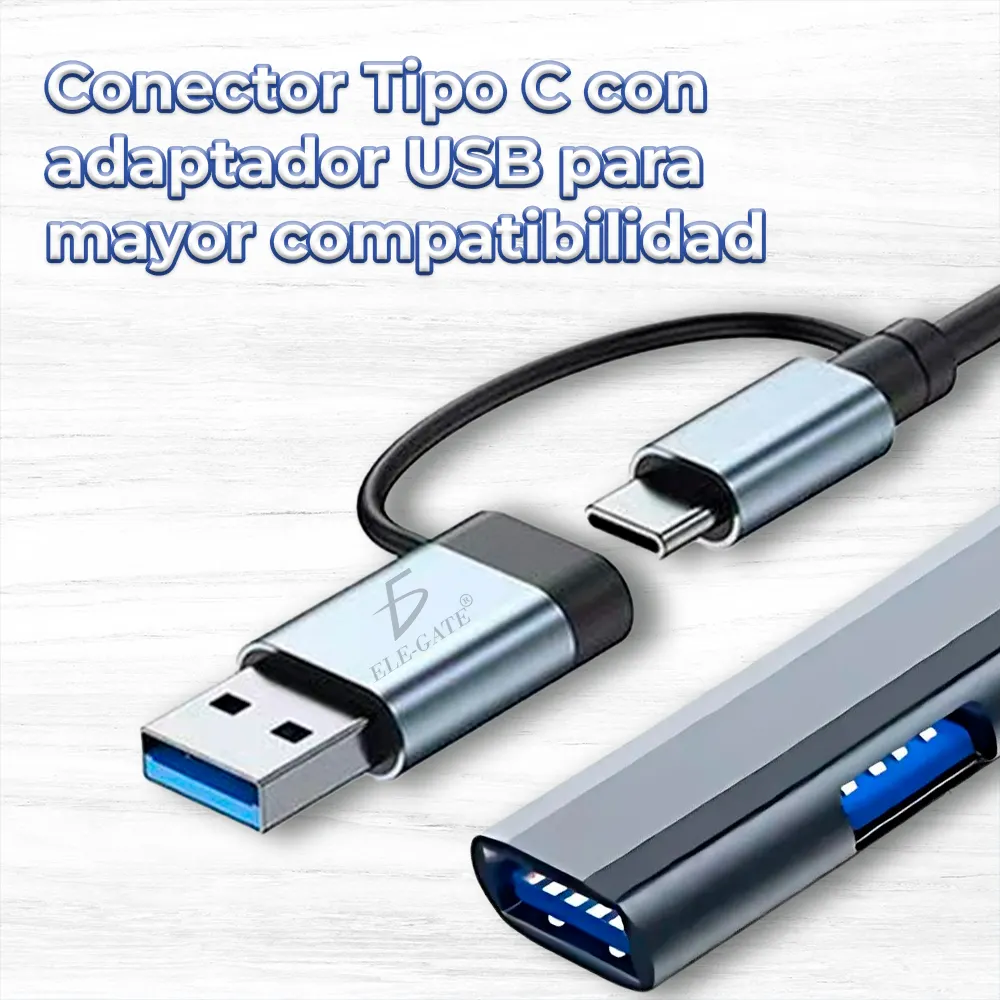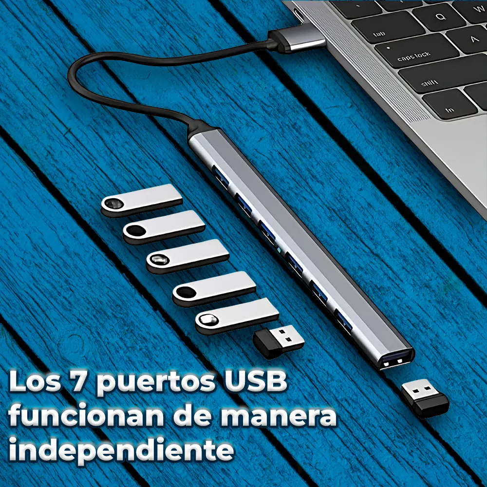 Optimiza tu espacio de trabajo y conecta múltiples dispositivos simultáneamente con el Multi Puerto 7 en 1 con Entrada USB 3.0 y USB-C, que ofrece 7 puertos USB 3.0 de alta velocidad. Este adaptador es ideal para quienes necesitan más conexiones sin sacrificar rendimiento, permitiendo transferencias de datos rápidas y eficientes.
